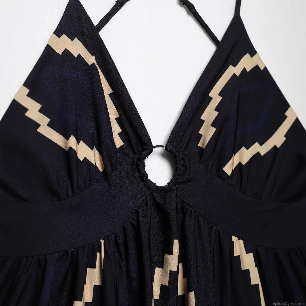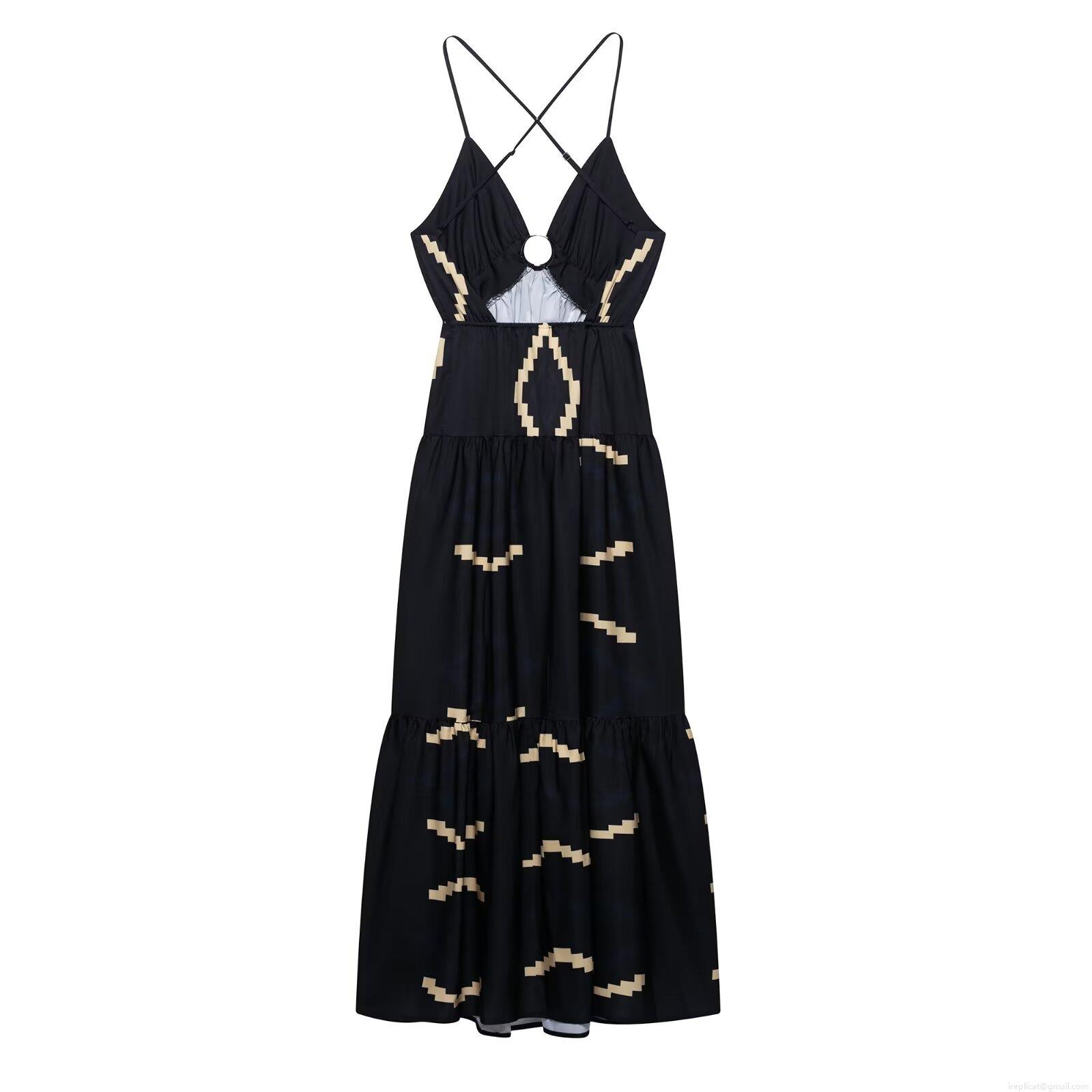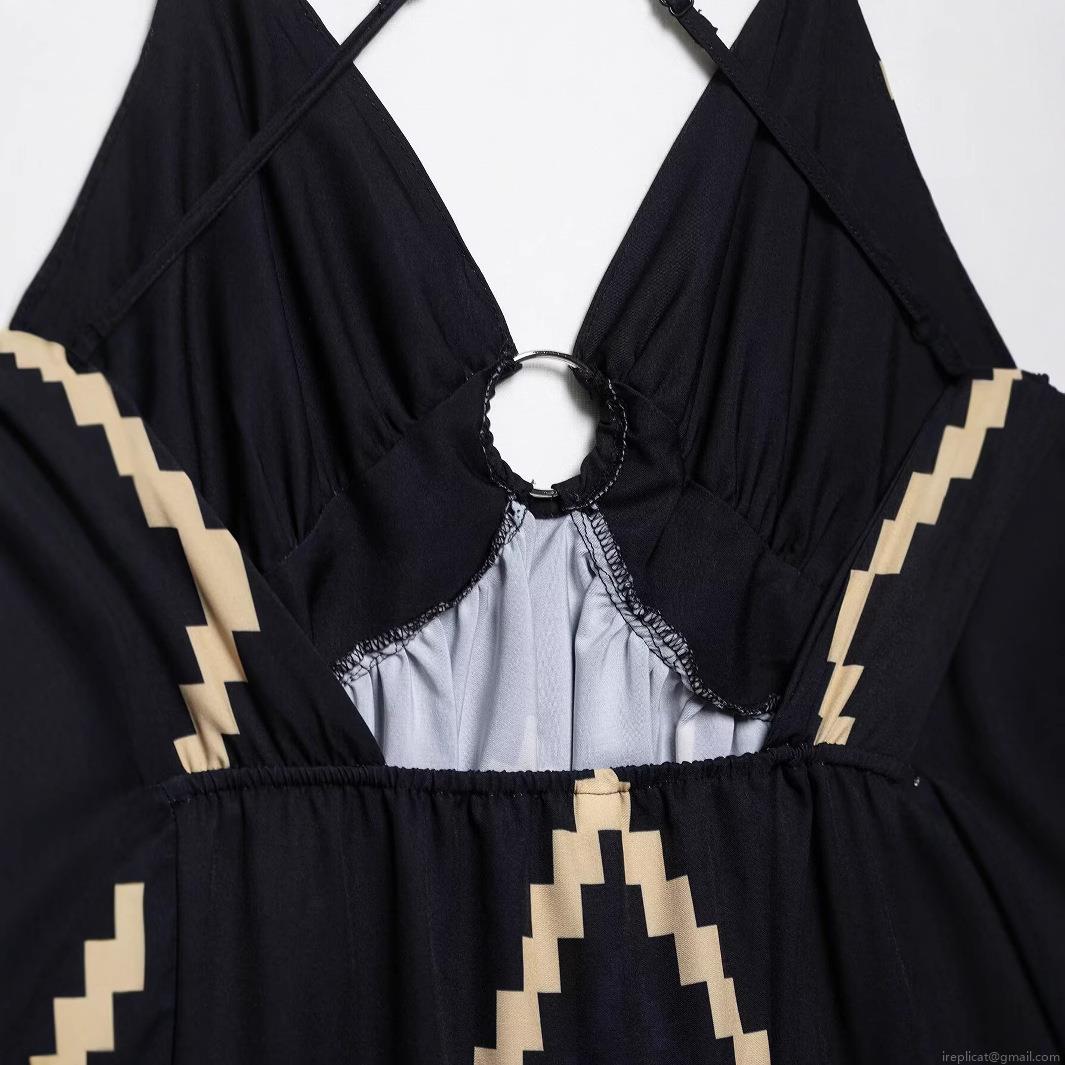 • Women Halter Backless Slit Maxi Dress Sexy V-Neck Geometric Stepped Print Polyester Sleeveless Long Dress For Summer Party Streetwear Clubwear