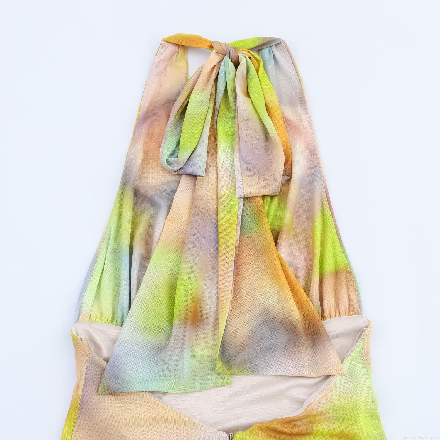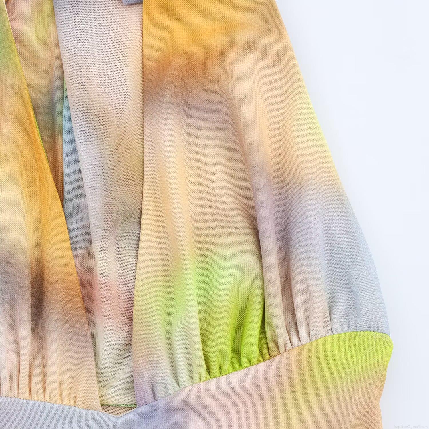 Tie Dye, Printing, Mesh, Neckband, Lace, Backless, Abstract Print