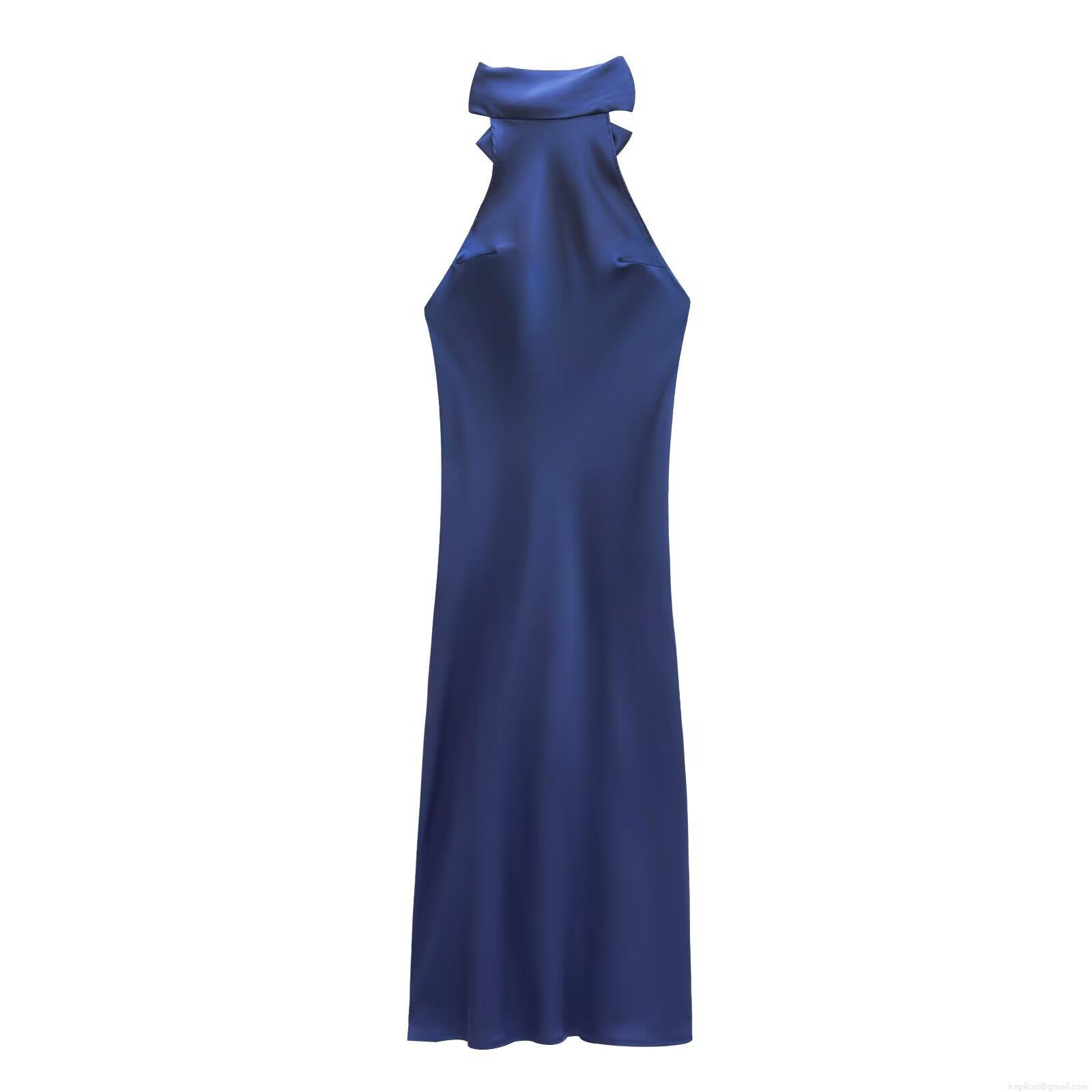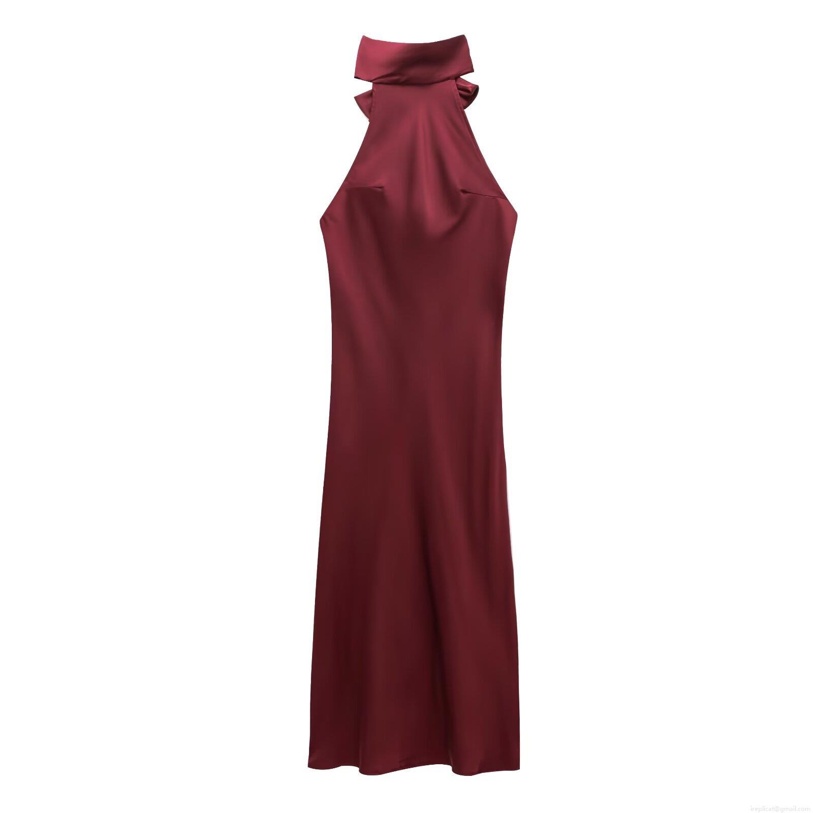 • Women Halter Neck Satin Maxi Dress Elegant Bow Backless Solid Color Sleek Party Evening Banquet Long Dress For Women Socialite Style Sexy Occasion Gown