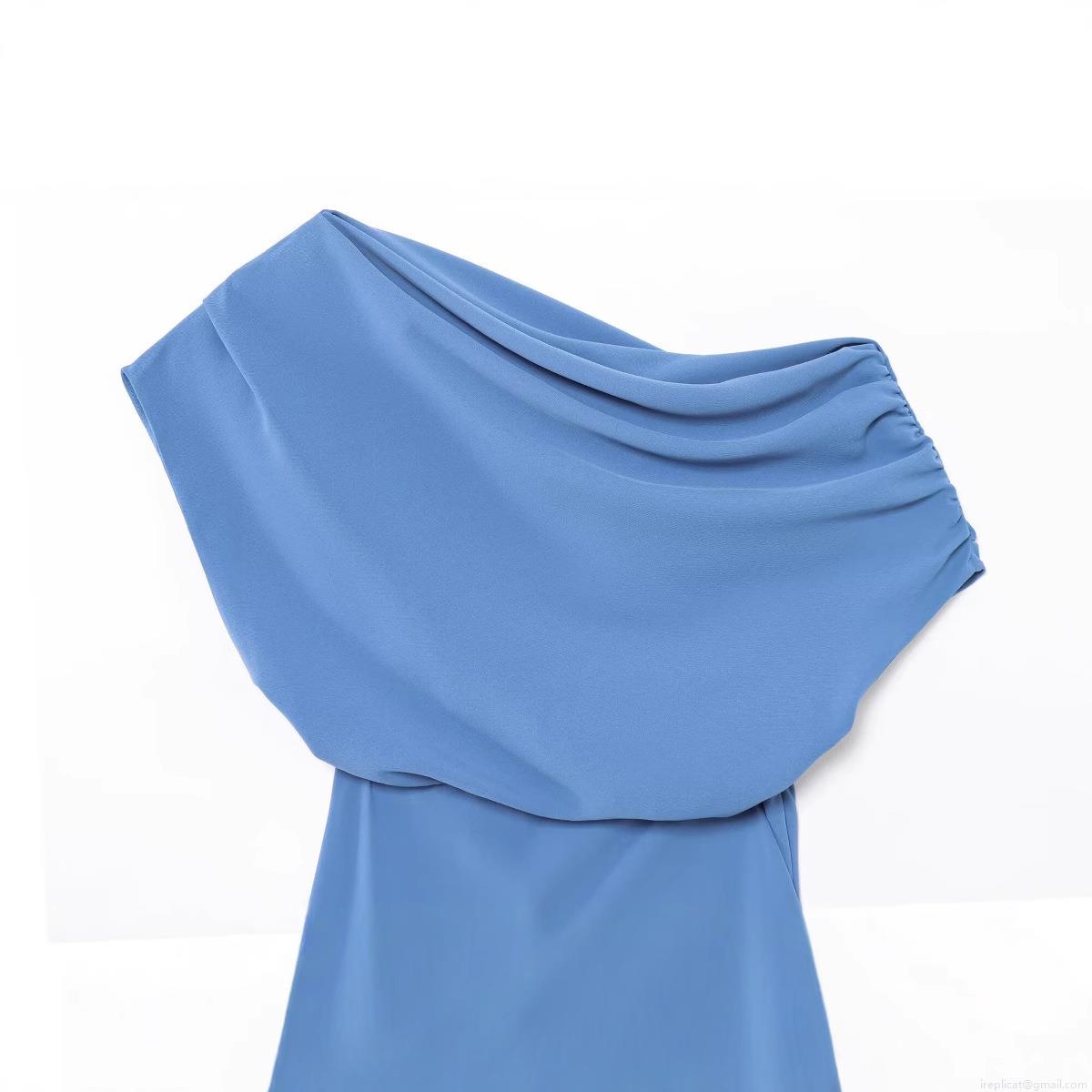 • Women One Shoulder Draped Maxi Dress Elegant Asymmetric Hem Sleeveless Solid Color Polyester Dress For Evening Party Street Style