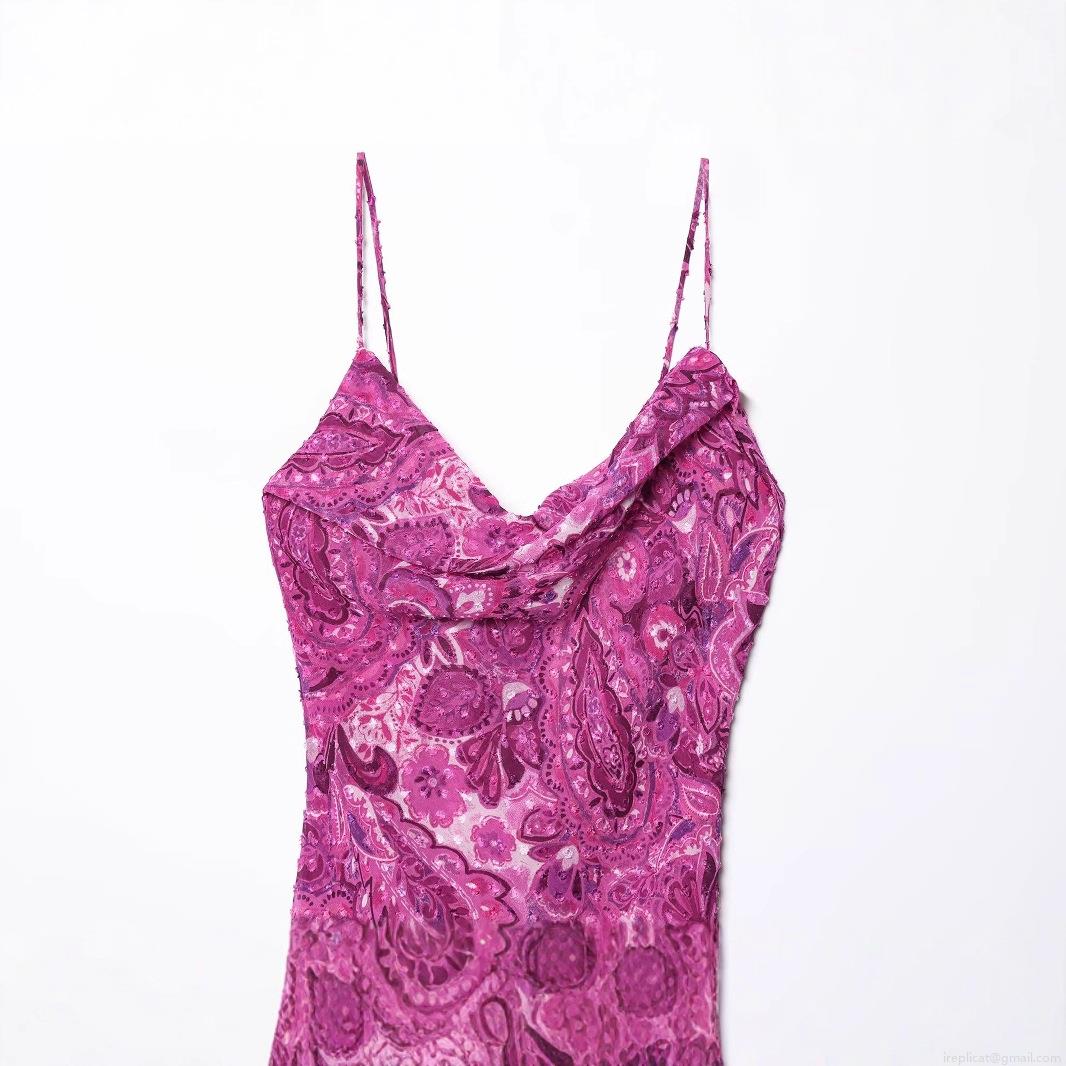 • Women Paisley Print Chiffon Maxi Dress V Neck Sleeveless Ruffle Hem Backless Tie Back Bohemian Retro Elegant Evening Party Long Dress