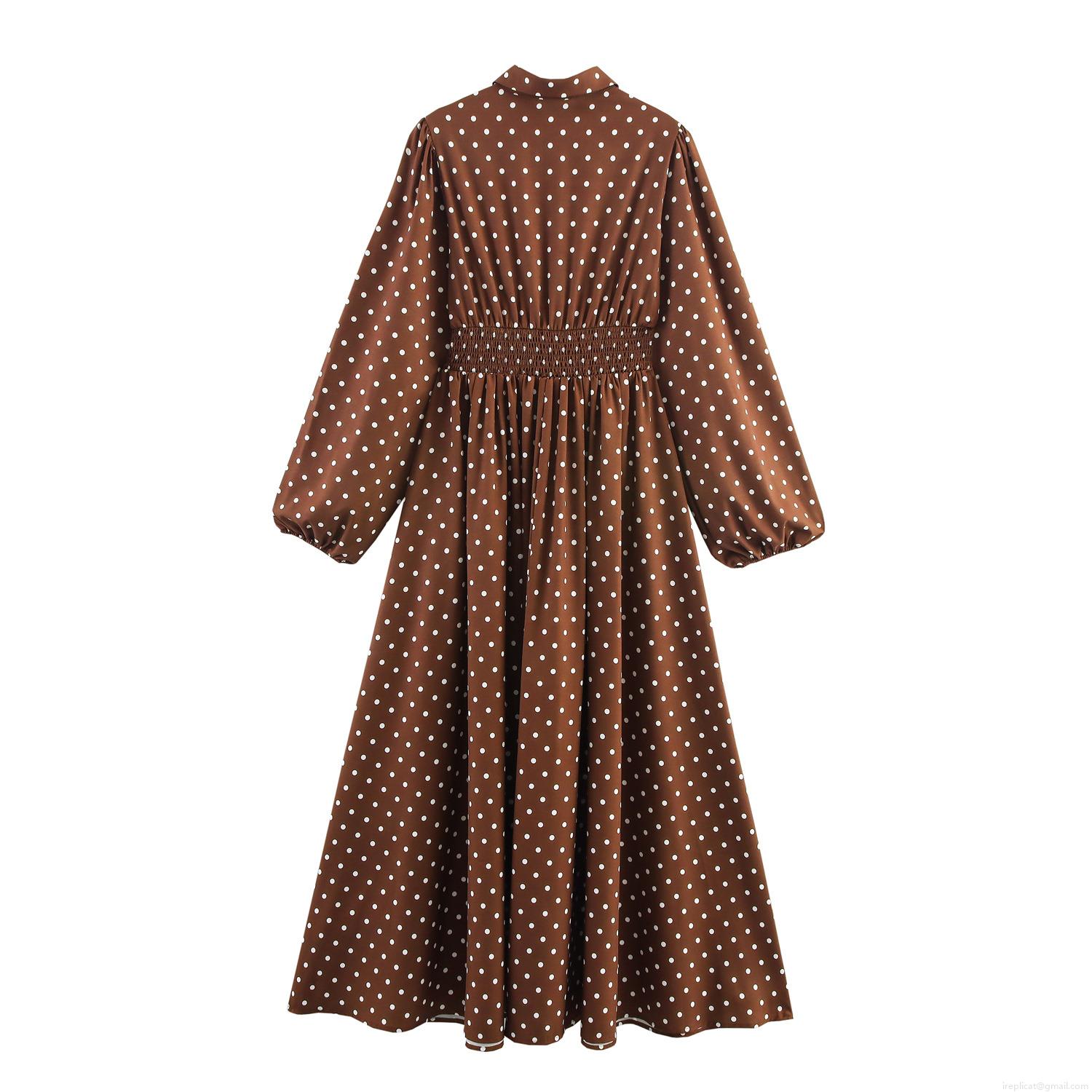 • Women Retro Polka Dot Maxi Dress Elegant Chiffon Shirt Collar Long Lantern Sleeve Smocking High Waist A-Line Long Gown For Daily Party