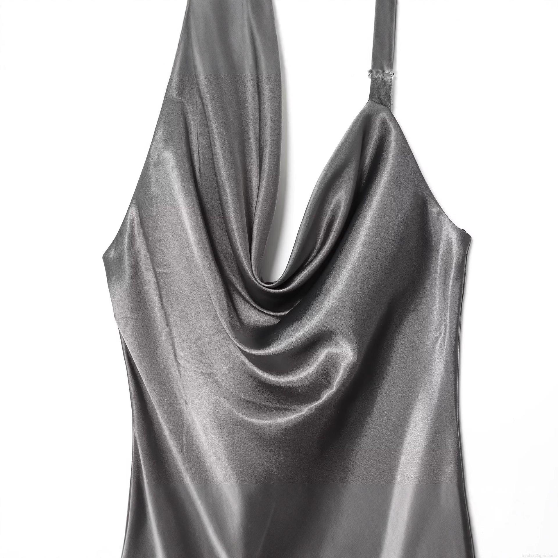 • Women Satin Cowl Neck Maxi Dress Asymmetric Beaded Strap Backless Evening Party Gown Elegant Silver Grey Slip Dress Silk Texture Wedding Guest Dress