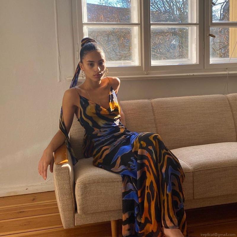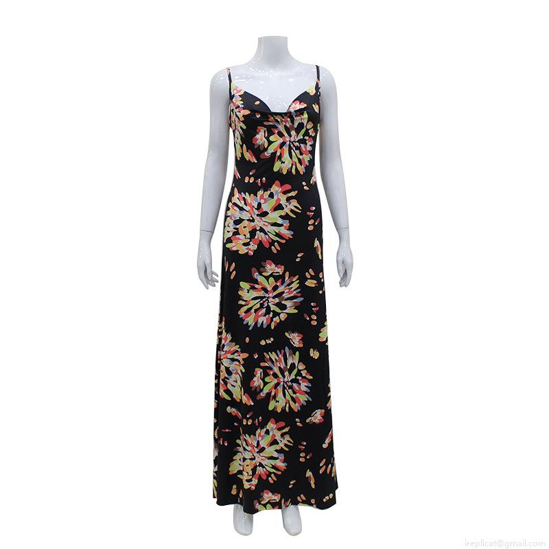 • Women Sexy Backless Cowl Neck Maxi Dress Vintage Floral Print Spaghetti Strap Split Hem Polyester Spandex Summer Beach Vacation Party Long Dress