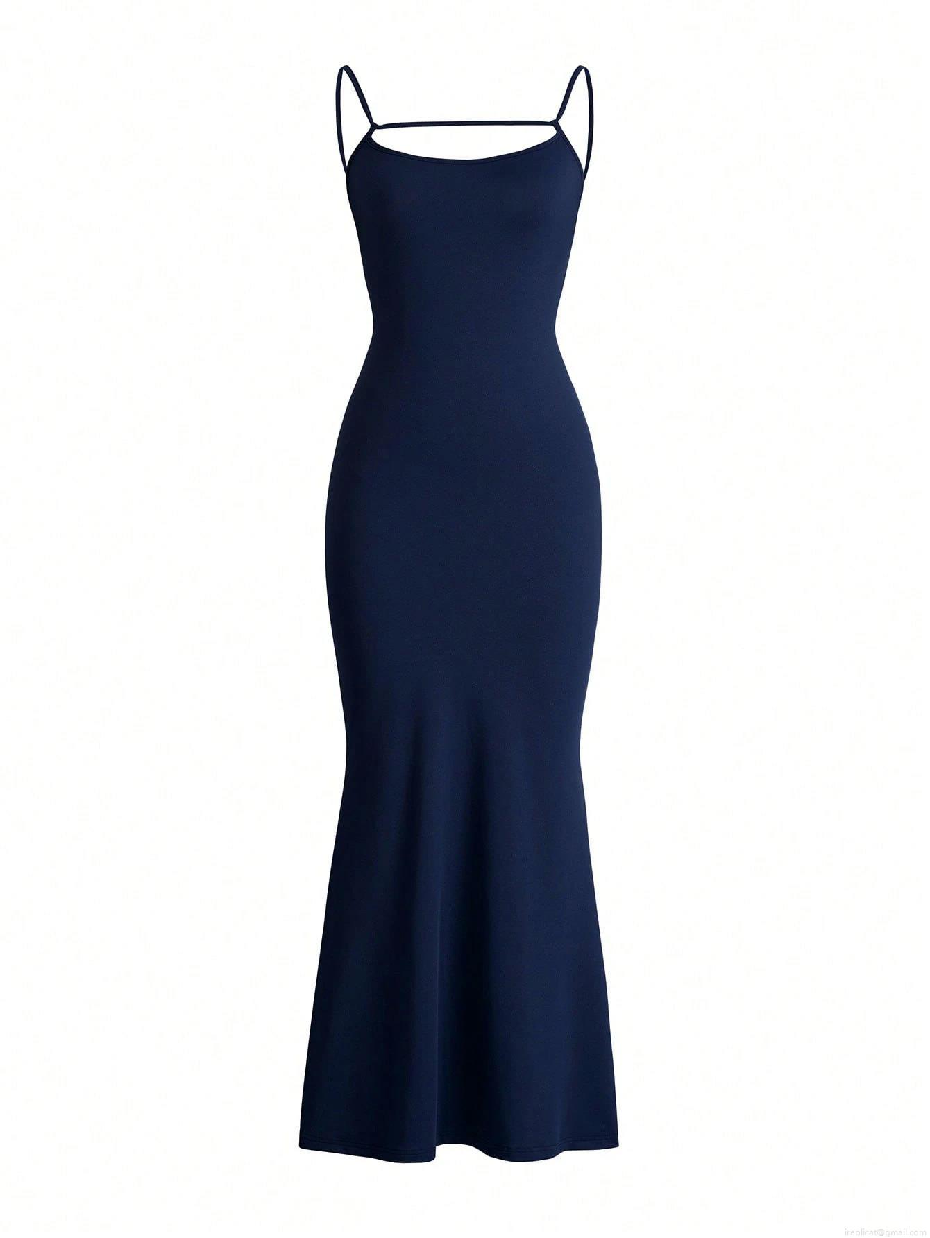 • Women Sexy Backless Criss Cross Royal Blue Maxi Dress Sleeveless Cami Slim Fit Party Evening Gown Polyester Elastane Knit Long Dress