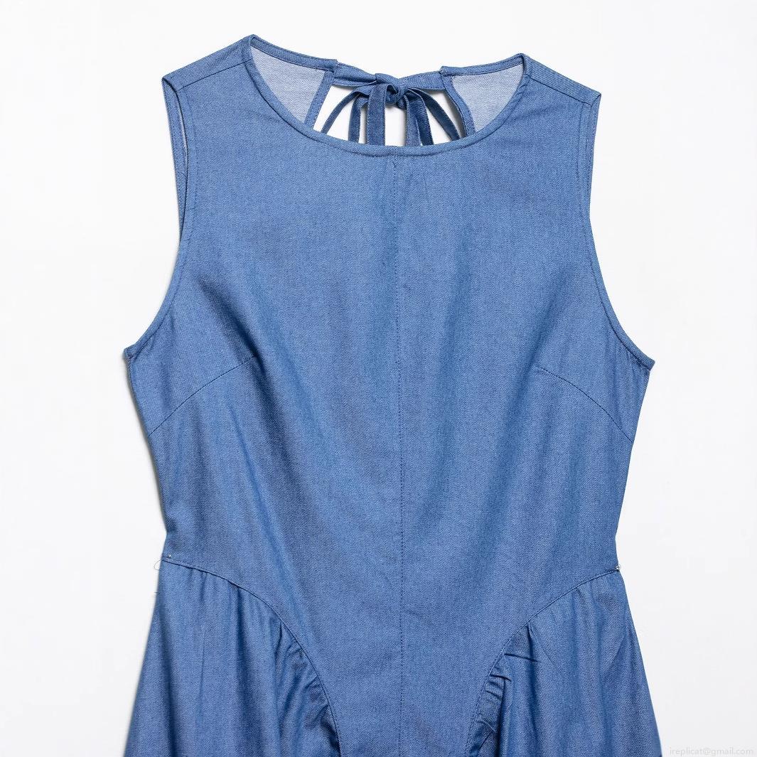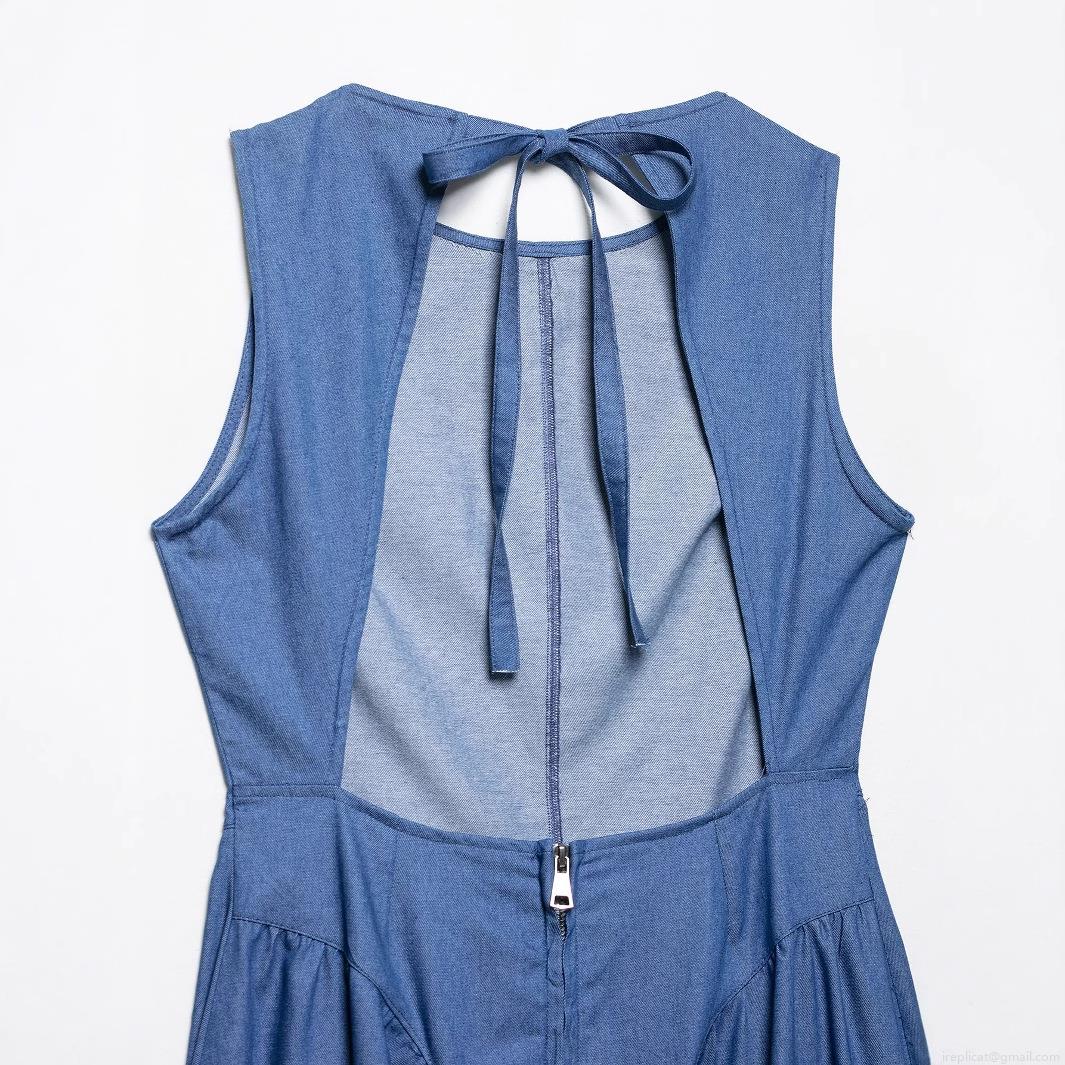 Women Sexy Backless Denim Texture Maxi Dress Sleeveless Hollow Out Halter Neck Tie Back Elegant Solid Blue Party Casual Long Dress
