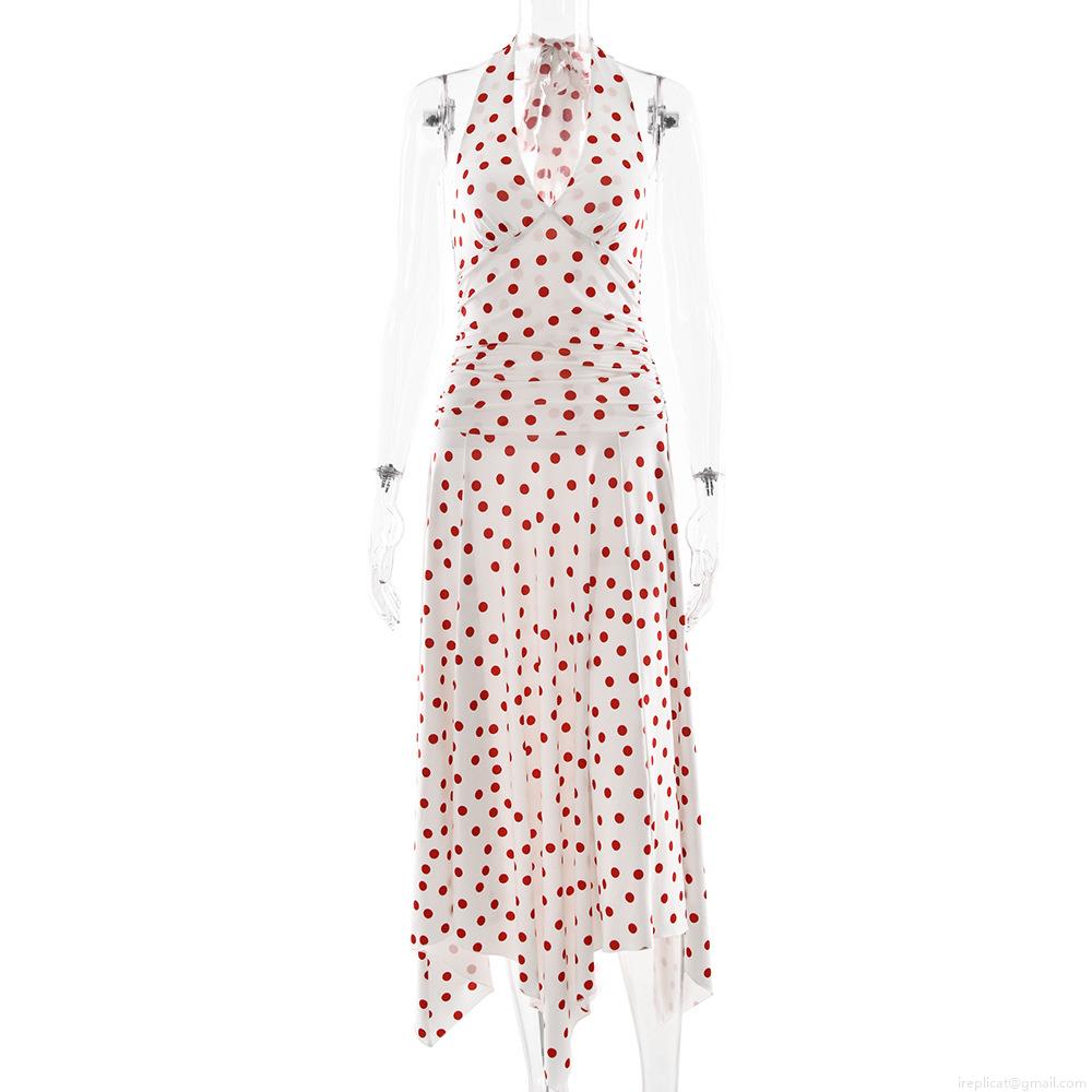Polka Dots, Pleats, Neckband, Polka Dot Print, Backless Design, Irregular Hem