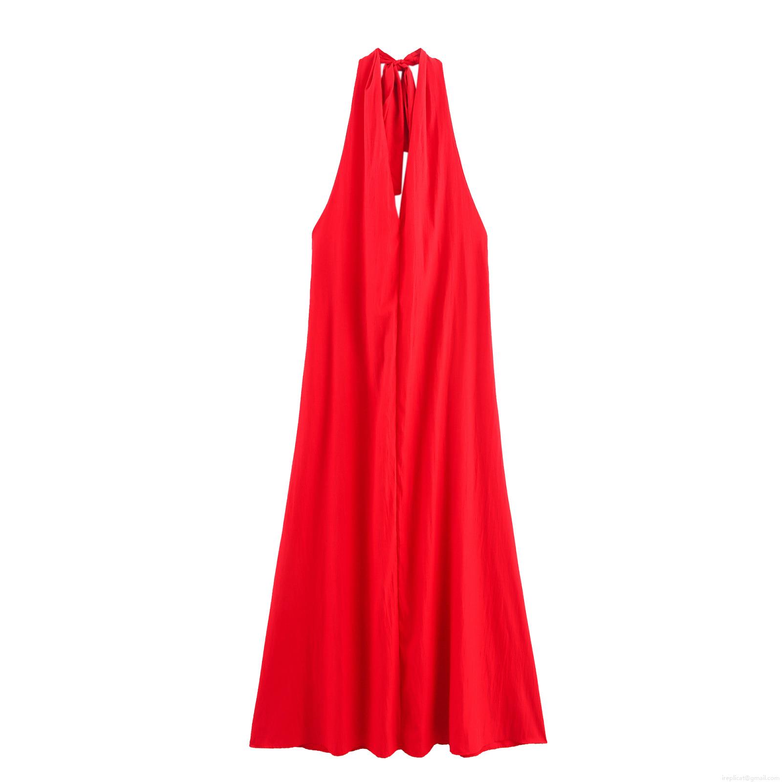 • Women Sexy Backless Halter Neck Maxi Dress Deep V-Neck Lace-up Plain Color Satin Feel Long Dresses For Evening Party Club Night Date Summer Autumn Streetwear