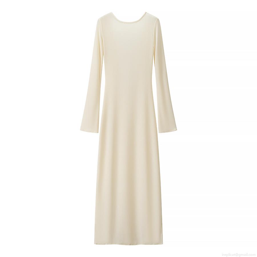Women Sexy Backless Long Sleeve Maxi Dress Solid Color Round Neck Bodycon Long Dress For Party Club Streetwear Evening Ladies
