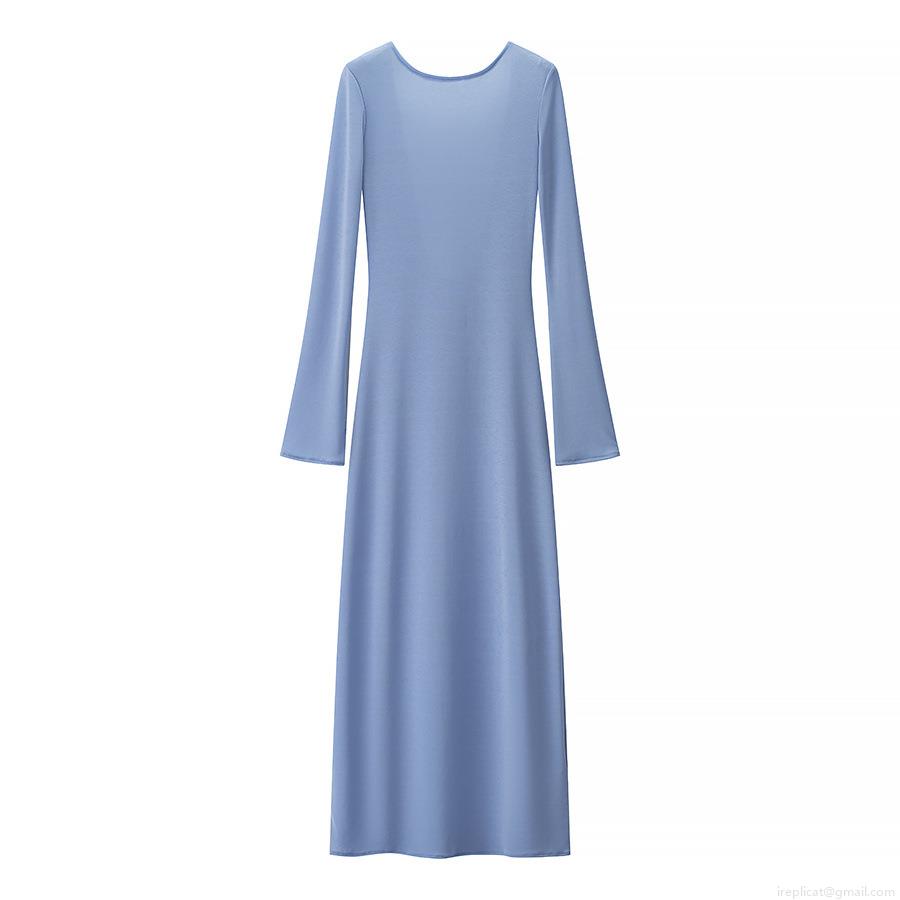 • Women Sexy Backless Long Sleeve Maxi Dress Solid Color Round Neck Bodycon Long Dress For Party Club Streetwear Evening Ladies