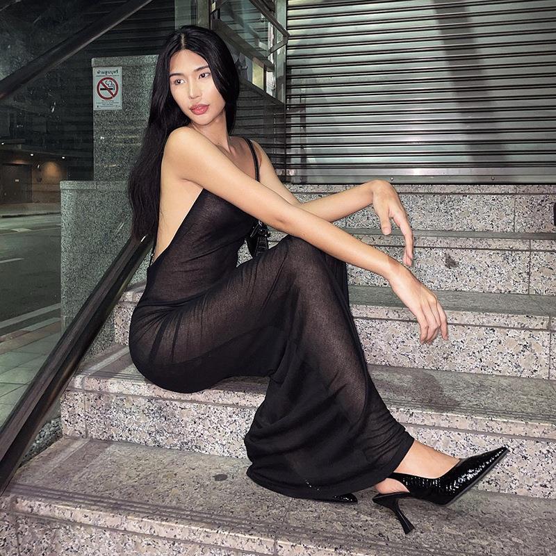 • Women Sexy Backless Mesh Sheer Bodycon Maxi Dress Spaghetti Strap High Waist Clubwear Party Night Out See Through Long Dress Y2K Spicy Girl Style Solid Black