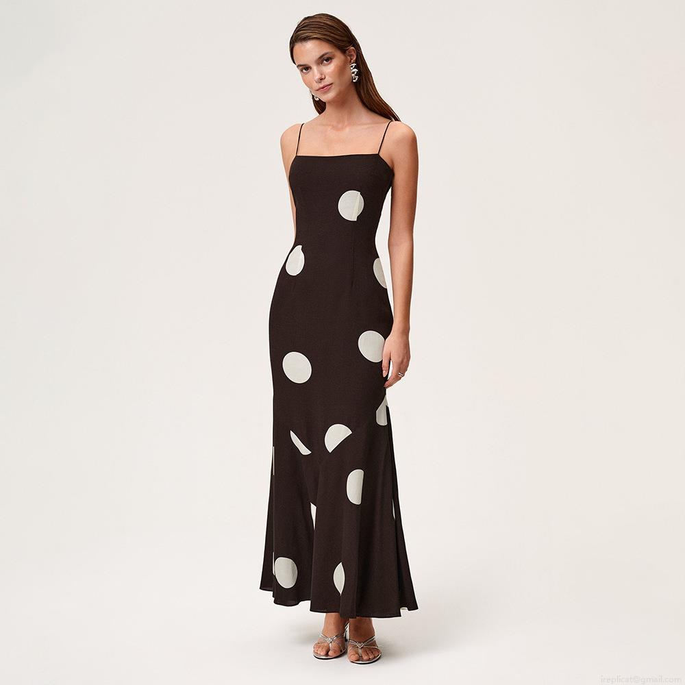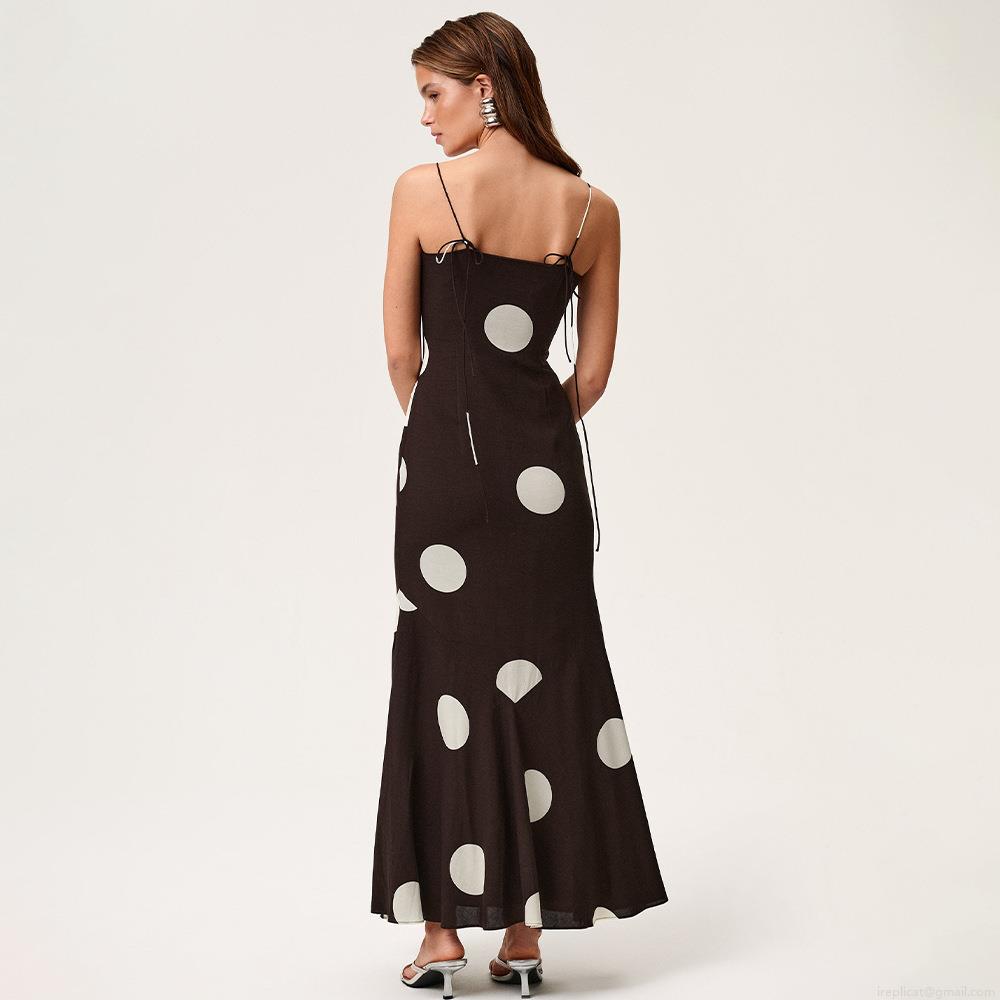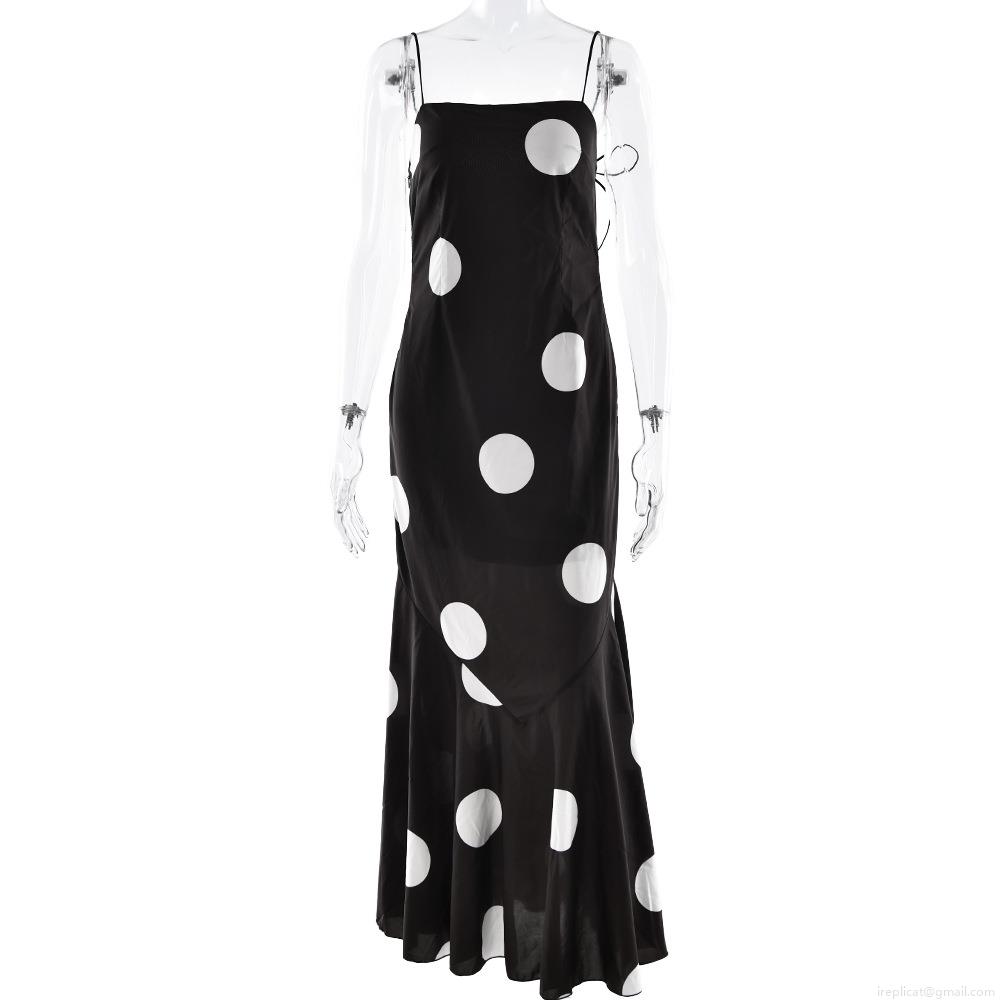 • Women Sexy Backless Polka Dot Maxi Dress Chiffon Spaghetti Strap Fishtail Long Sundress Elegant Slim Fit Beach Party Sleeveless Dress Polyester 4-Way Stretch