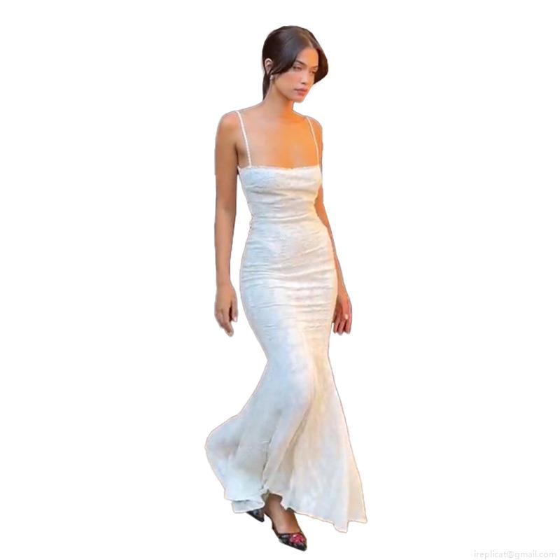 Solid Color, Jacquard, Floral Pattern, Backless, Cross Straps, Jacquard Texture, Fishtail Skirt