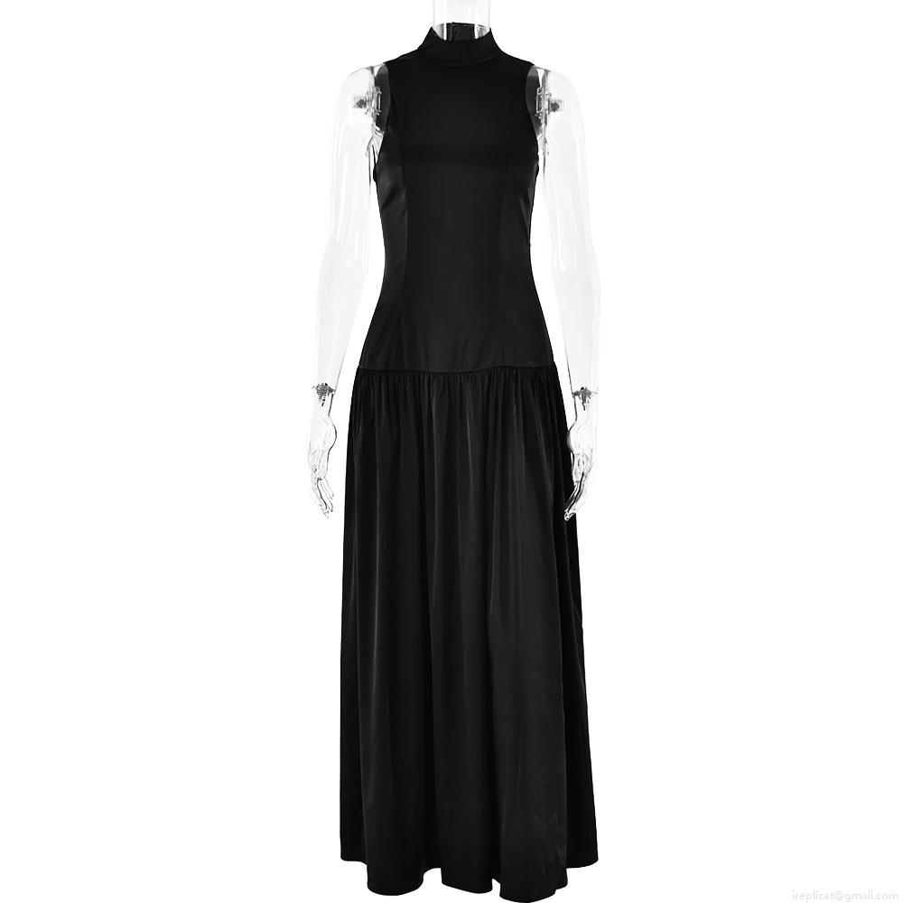 • Women Sexy Backless Satin Maxi Dress Sleeveless High Neck High Waist Slim Fit Pleated Long Party Dress For Evening Banquet Clubwear