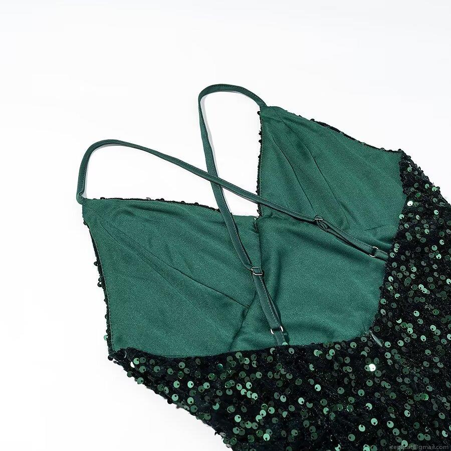• Women Sexy Backless Sequin Maxi Dress Asymmetric Hem Sleeveless Halter V Neck Polyester Spandex Evening Party Long Gown