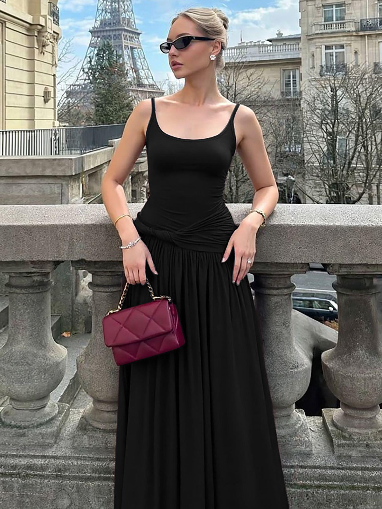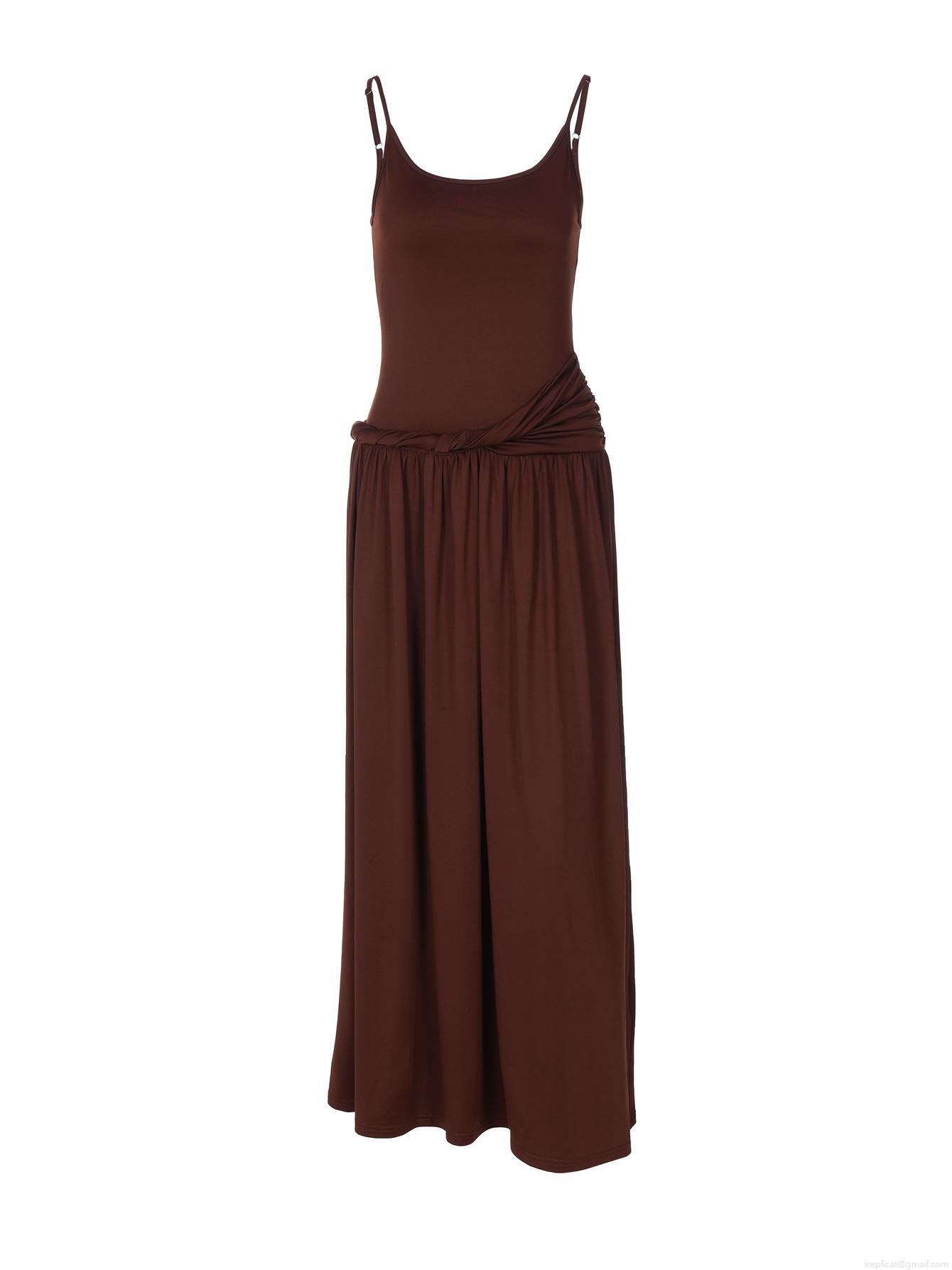 • Women Sexy Backless Spaghetti Strap Maxi Dress Polyester Spandex Blend Twist Knot Waist Pleated Slim Fit Summer Vacation Party French Style Elegant Long Dress