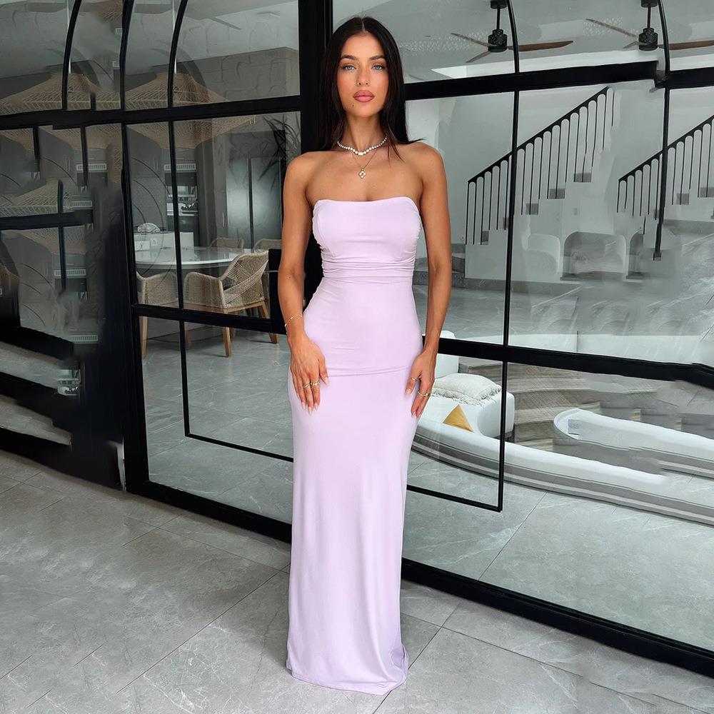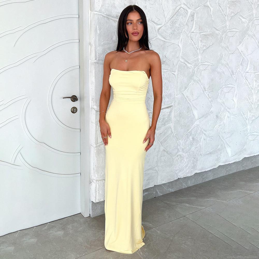 Women Sexy Backless Strapless Maxi Dress Ruched Lace Up Mermaid Slim Fit Milk Silk Polyester Evening Party Dress Floor Length Clubwear Dress