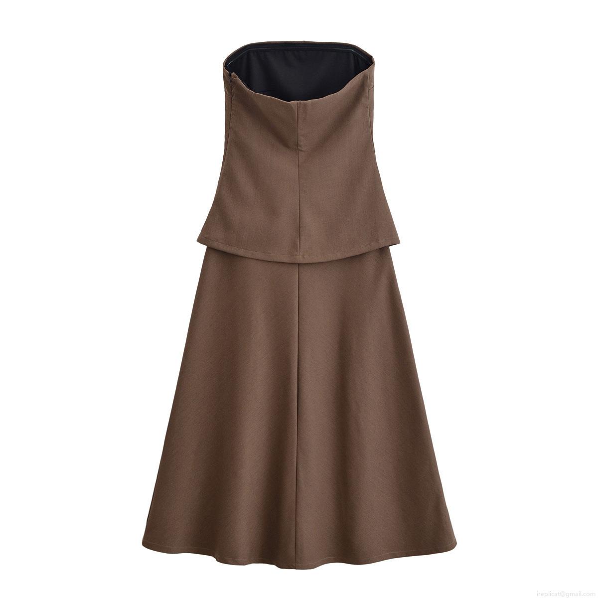 • Women Sexy Backless Tube Top Maxi Dress Polyester Patchwork Ruffle Summer Streetwear Party Dress Solid Color Slim Fit Floor Length Evening Gown
