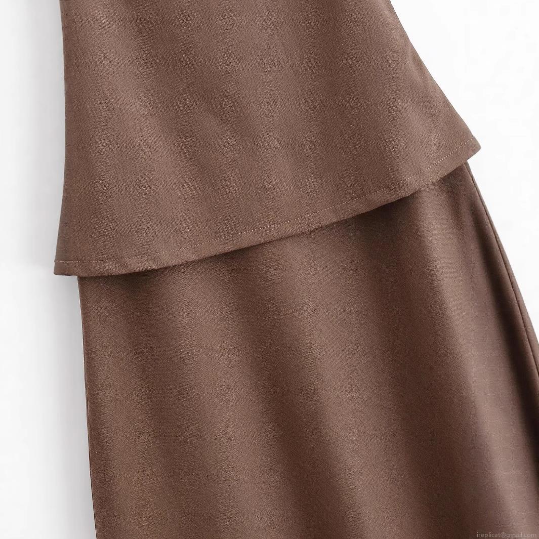 Solid Color, Splice, Ruffles, Backless, Double-layer Stacked