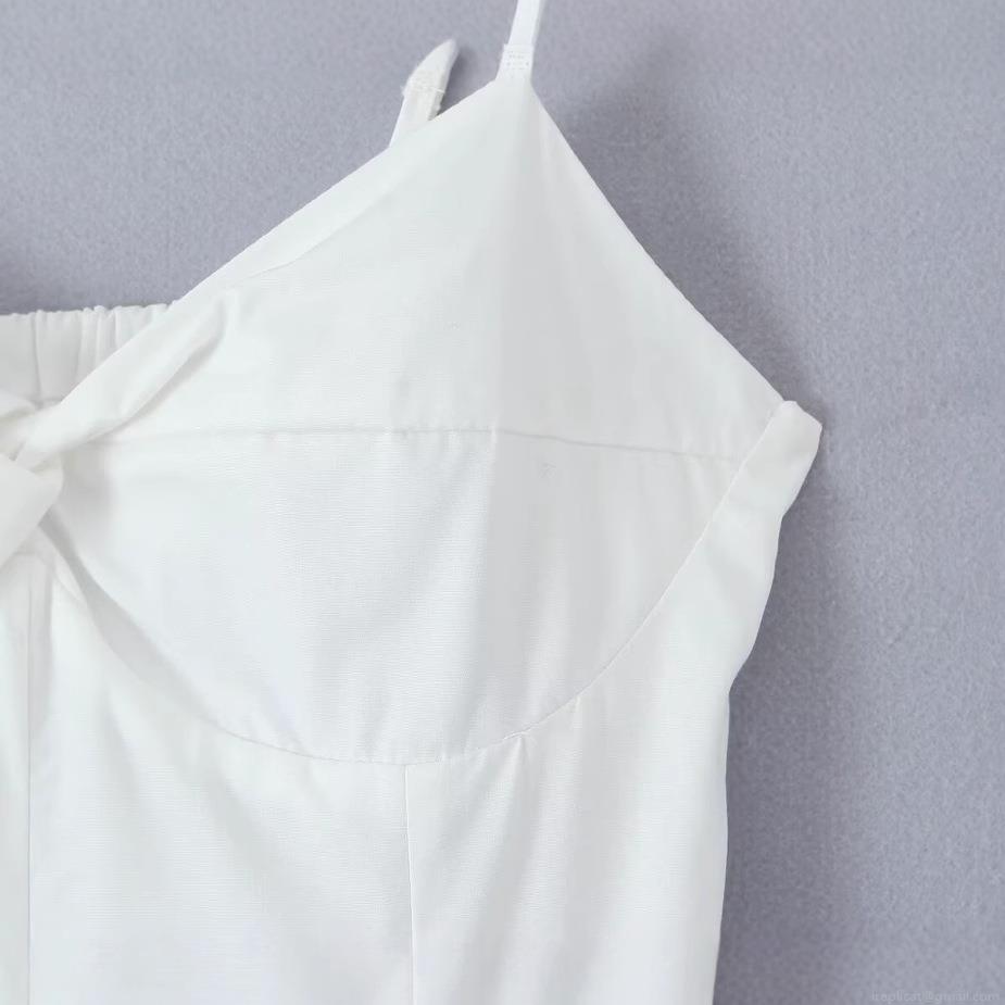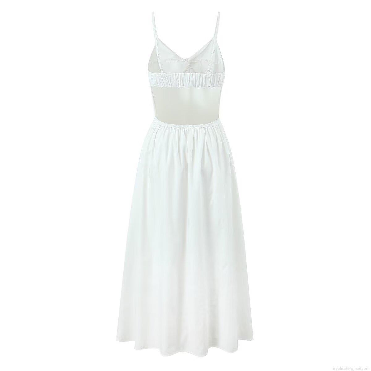 • Women Sexy Backless V-Neck Cami Maxi Dress 100% Cotton Hollow Knot Solid White Long Dress Elegant Western Style Summer Beach Party Sleeveless Sundress