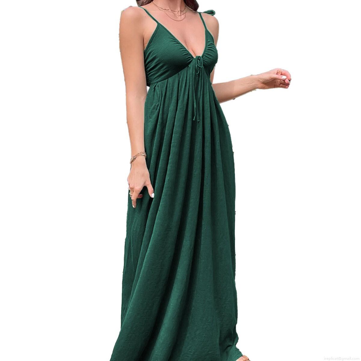 • Women Sexy Backless V-Neck Cami Maxi Dress Cotton Polyester Blend A-Line Slim Fit Summer Beach Vacation Long Dress For Women