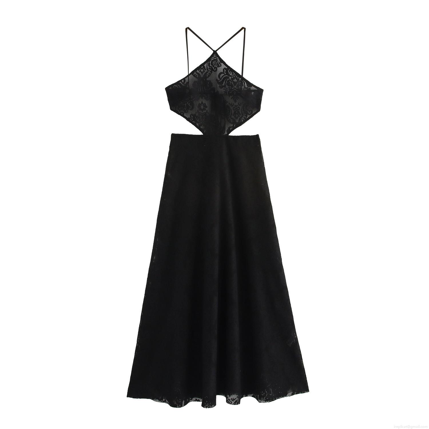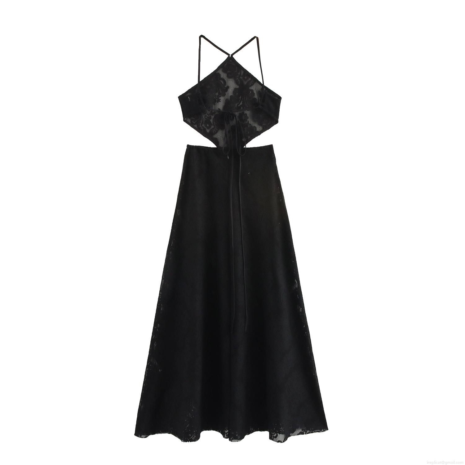 • Women Sexy Black Lace Hollow Out Maxi Dress Halter Backless Crochet Mesh Beach Long Dress For Summer Vacation Party
