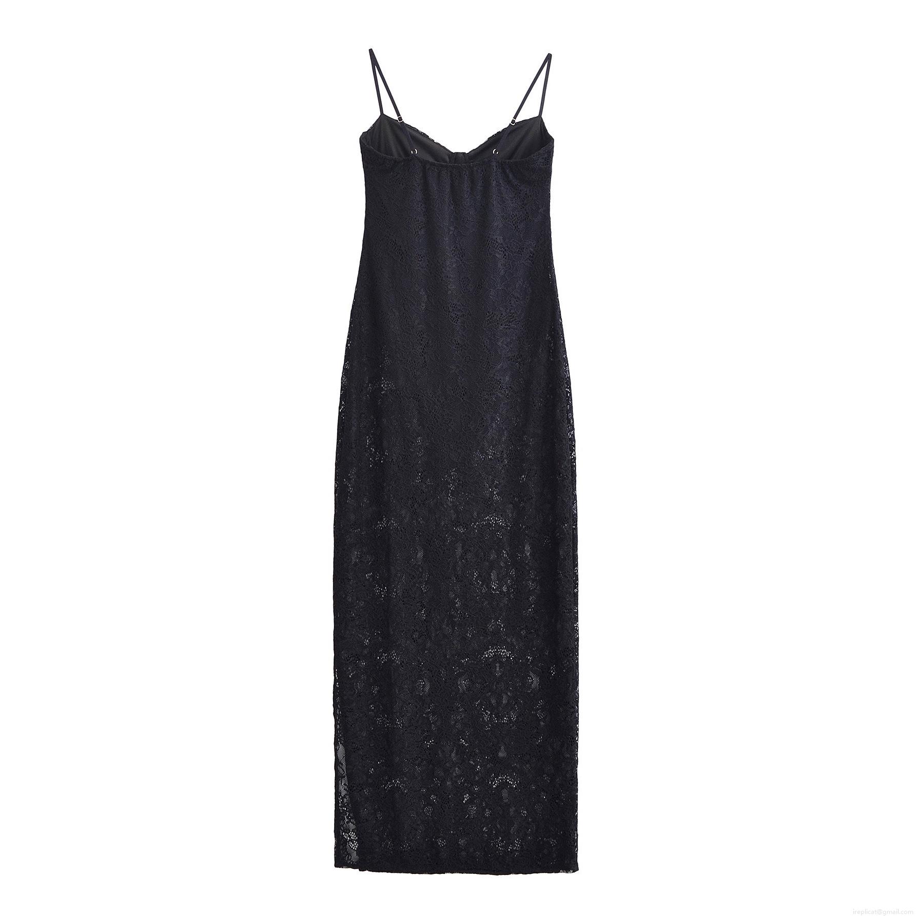 • Women Sexy Black Lace Maxi Dress Hollow Out Sleeveless V-Neck Backless Patchwork Spaghetti Strap Elegant Evening Party Slim Long Dress