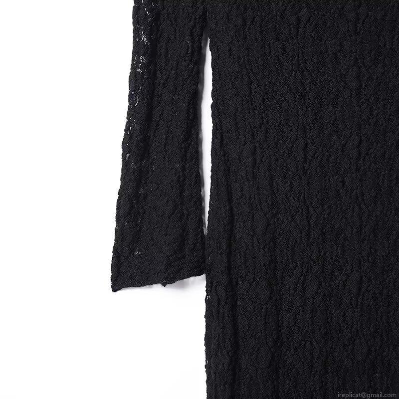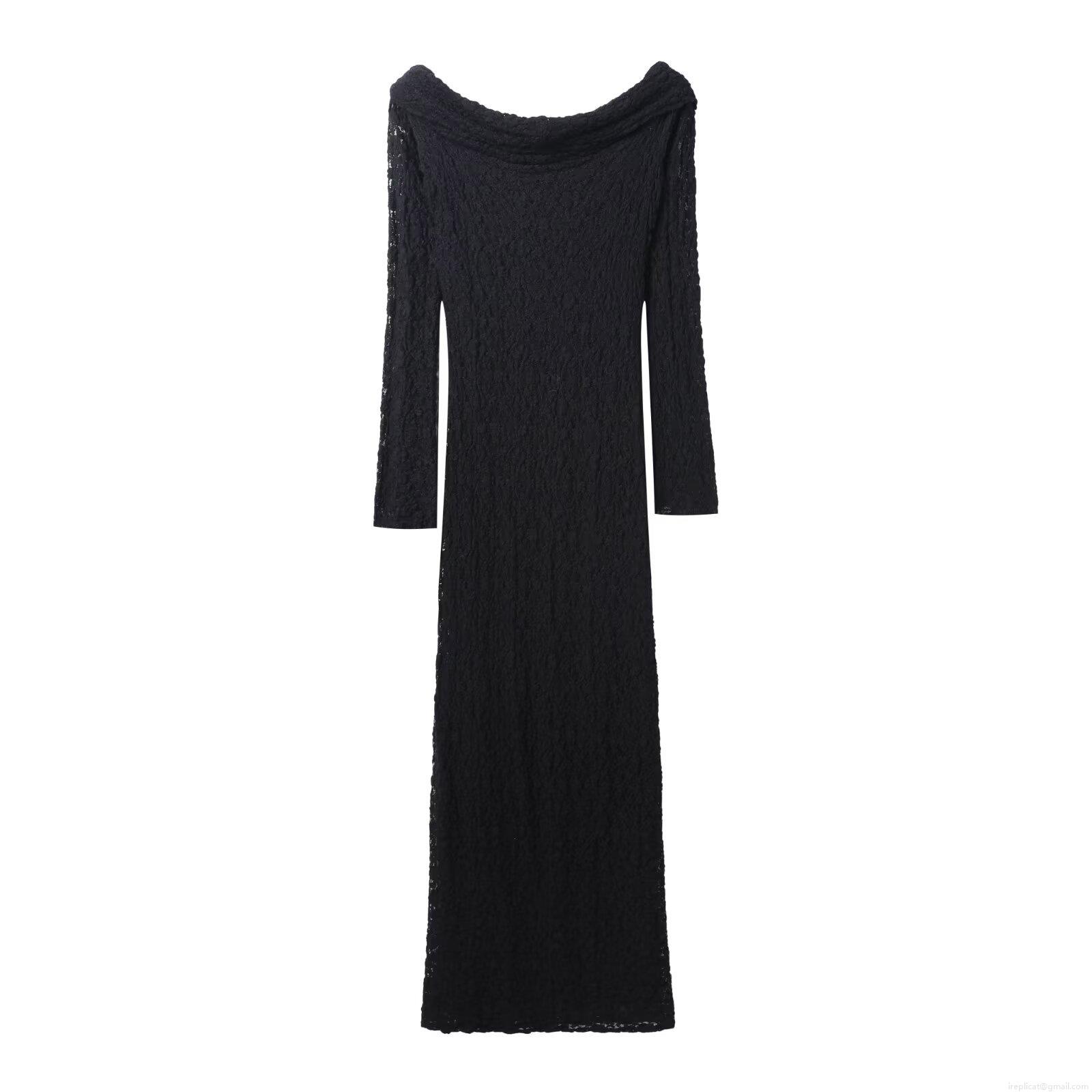 • Women Sexy Black Lace Off-Shoulder Maxi Dress Long Sleeve Bodycon Patchwork Evening Party Long Dress Elegant Streetwear For Lady