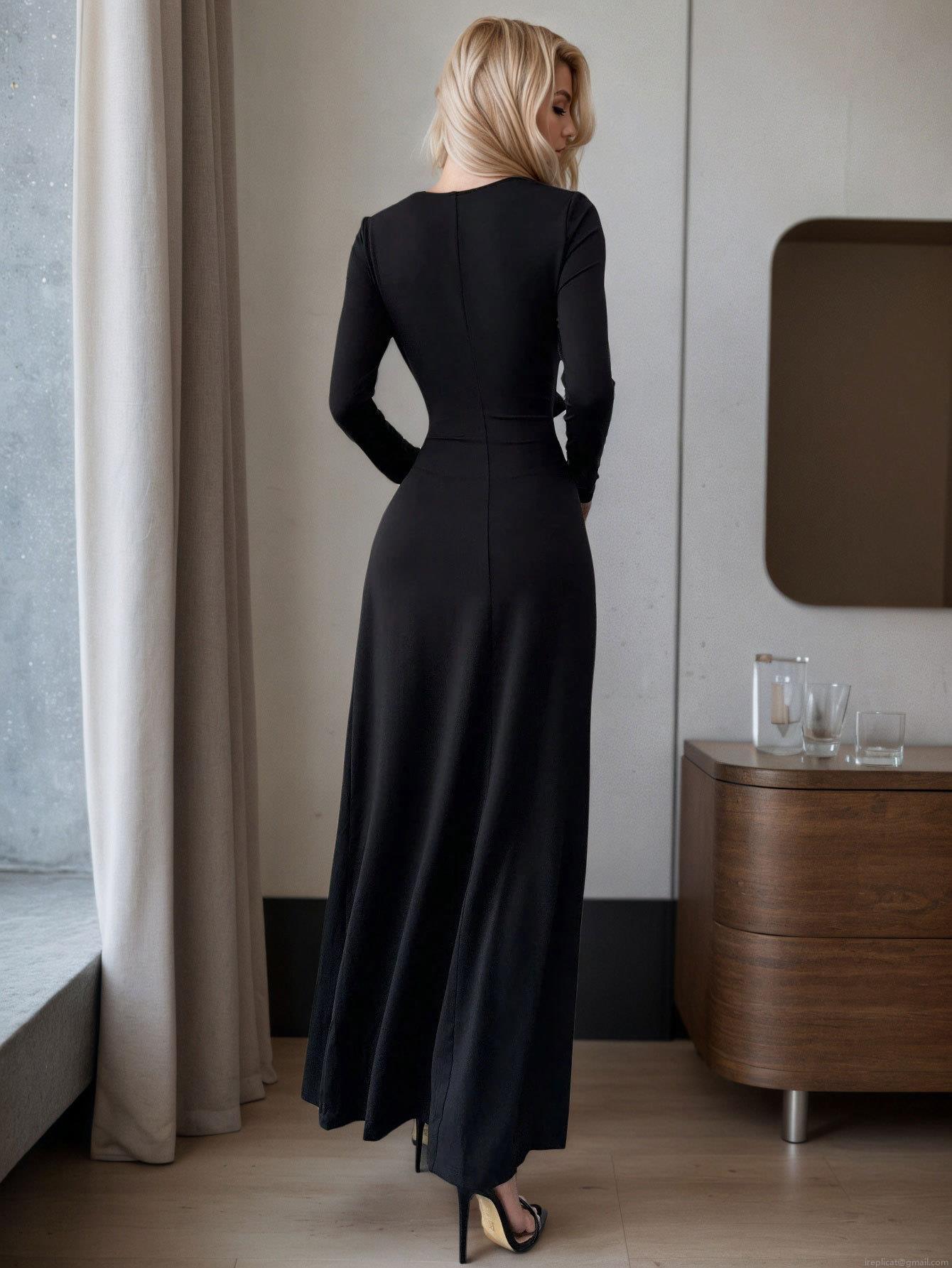 • Women Sexy Black Long Sleeve Maxi Dress Cut-out Waist High Slit Knitted Polyester Evening Party Prom Dress Bodycon Slim Fit Elegant Clubwear For Ladies
