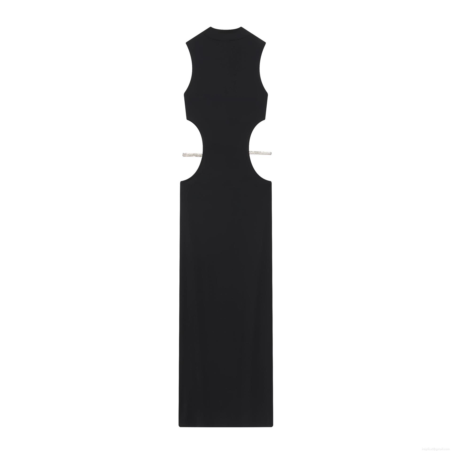 • Women Sexy Black Sleeveless Maxi Dress With Side Cutout Rhinestone Decor Mock Neck High Stretch Bodycon Evening Party Long Gown