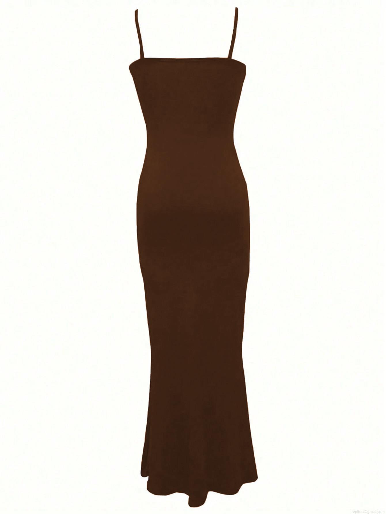 • Women Sexy Bodycon Maxi Dress Square Neck Sleeveless Suspender High Waist Slim Fit Solid Color Party Club Night Summer Long Dress