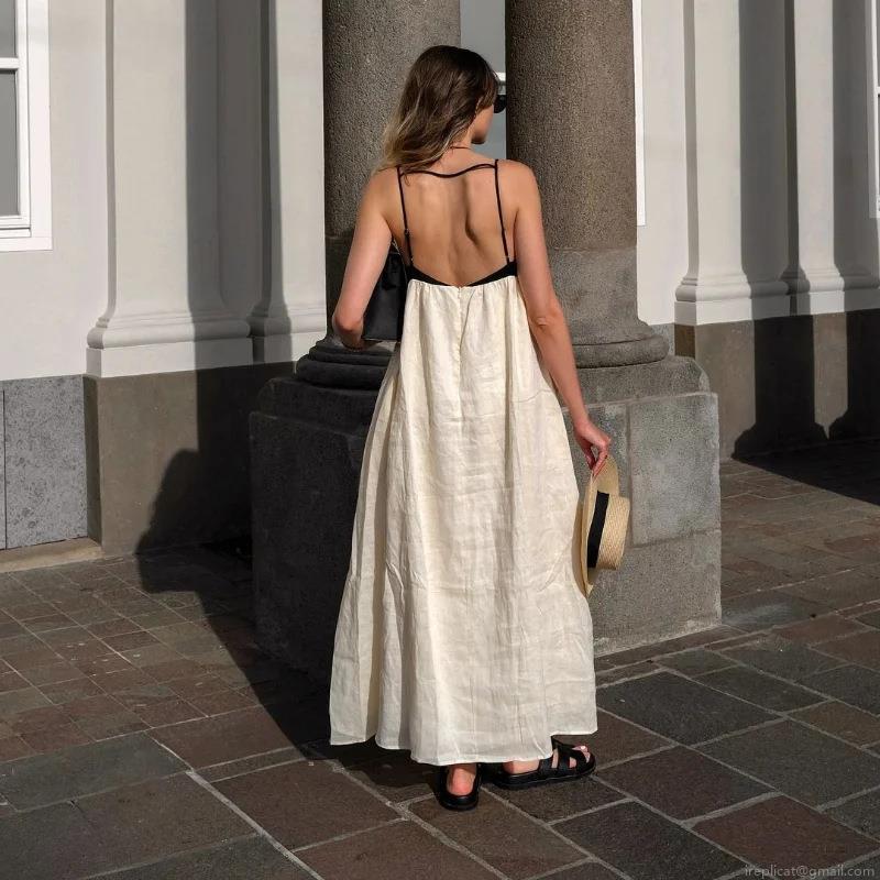 • Women Sexy Color Block Backless Maxi Dress Spaghetti Straps Loose Fit Vacation Sleeveless Long Dress Polyester Blend Elegant Evening Party Summer Beach Sundress