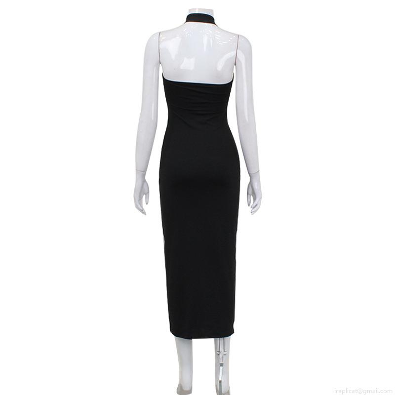 Solid Color, Straps, Neckband, Backless, Tight-fitting Hip Body, Cross Neckline
