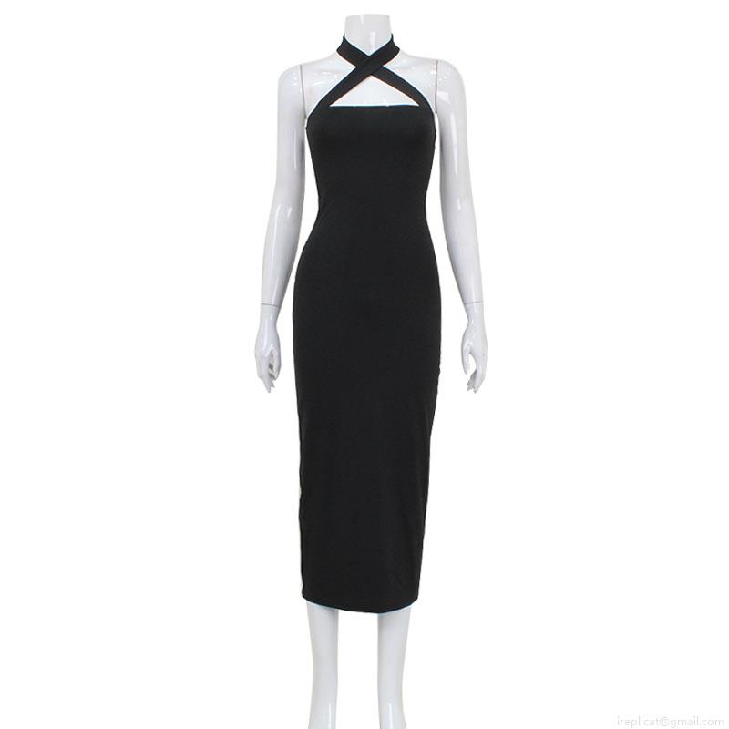 • Women Sexy Criss-Cross Halter Bodycon Maxi Dress Backless Tie-Up Slim Fit Polyester Spandex Long Dress For Evening Party Clubwear