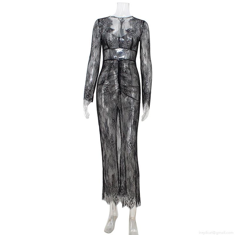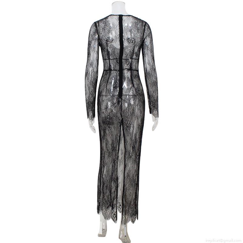 • Women Sexy Deep V-Neck Long Sleeve Lace Maxi Dress Elegant Sheer Floral Bodycon Evening Party Club Night Out Long Dress Polyester Spandex Gown