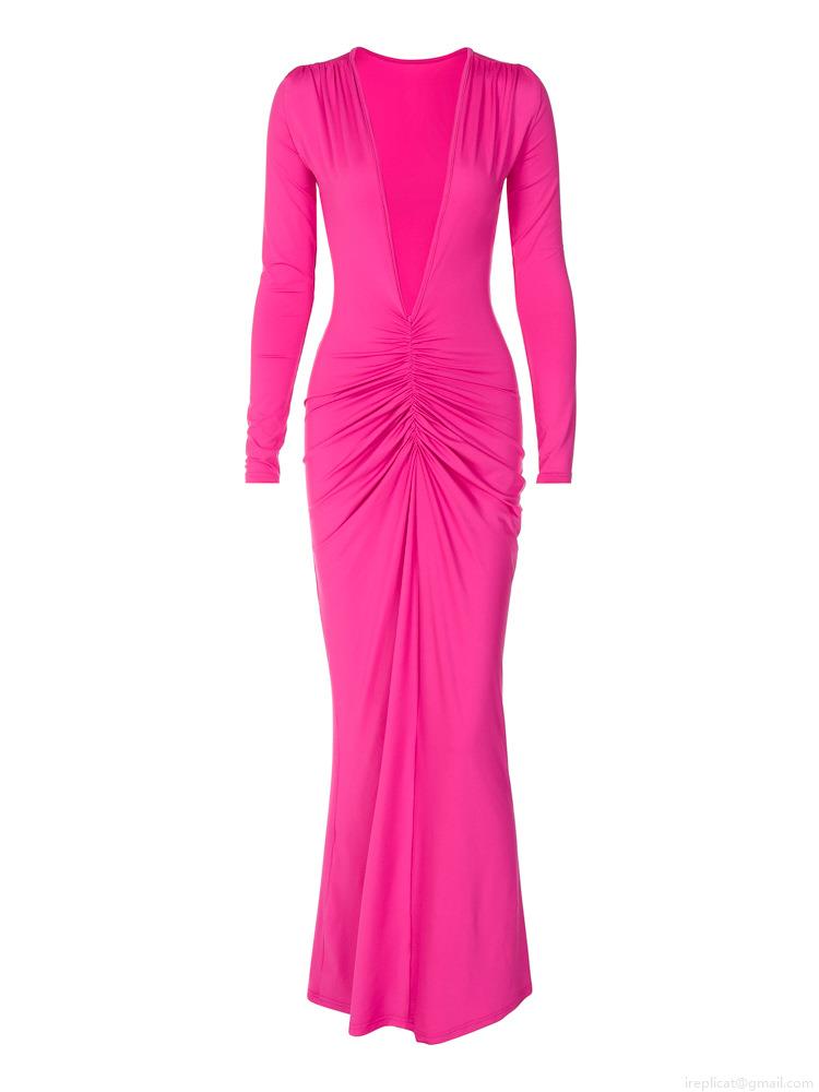 Solid Color, Pleats, Backless, Gathering, Deep V