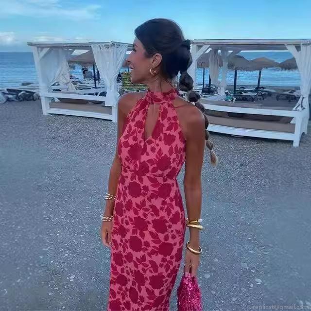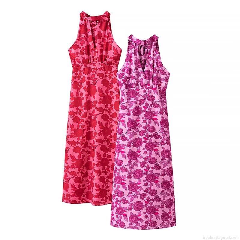 • Women Sexy Elegant Halter Maxi Dress Floral Print Polyester Sleeveless Cutout Keyhole Long Dress For Party Vacation Summer Beach Wear High Waist A-Line Sundress