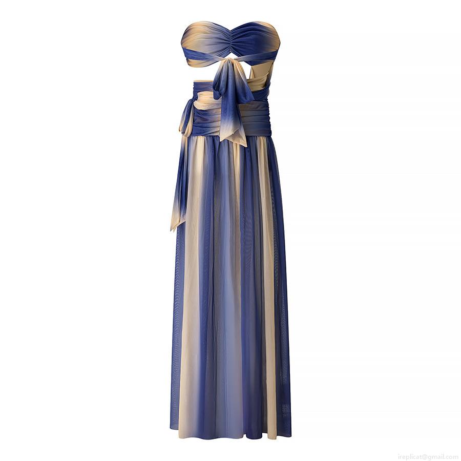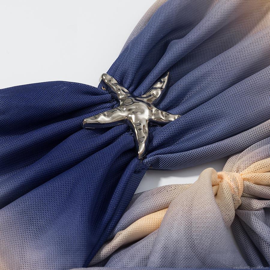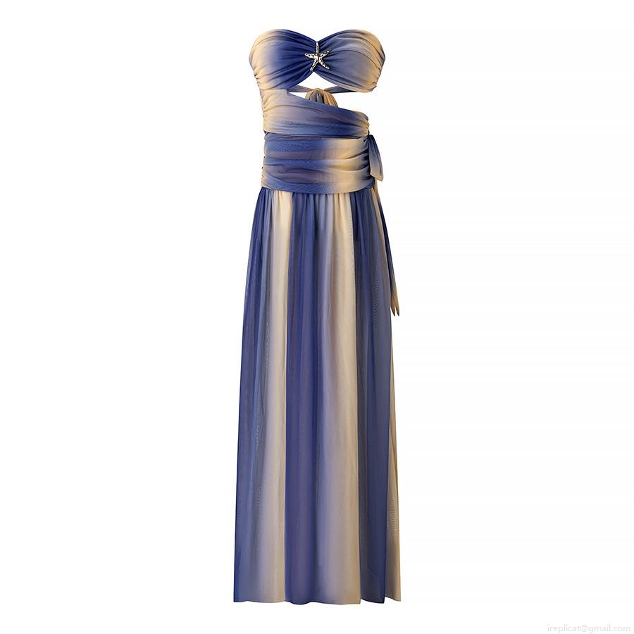 • Women Sexy Gradient Mesh Strapless Maxi Dress With Starfish Metal Buckle Hollow Out Beach Holiday Summer Long Dress Evening Party Dress