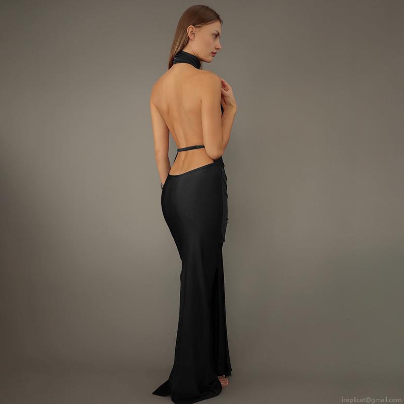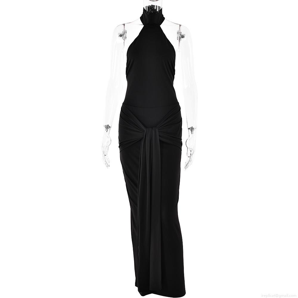 • Women Sexy Halter Maxi Dress Backless Round Neck Sleeveless Tie Waist Knot Bodycon Long Dress Polyester Milk Silk Fabric Streetwear Party Evening Clubwear