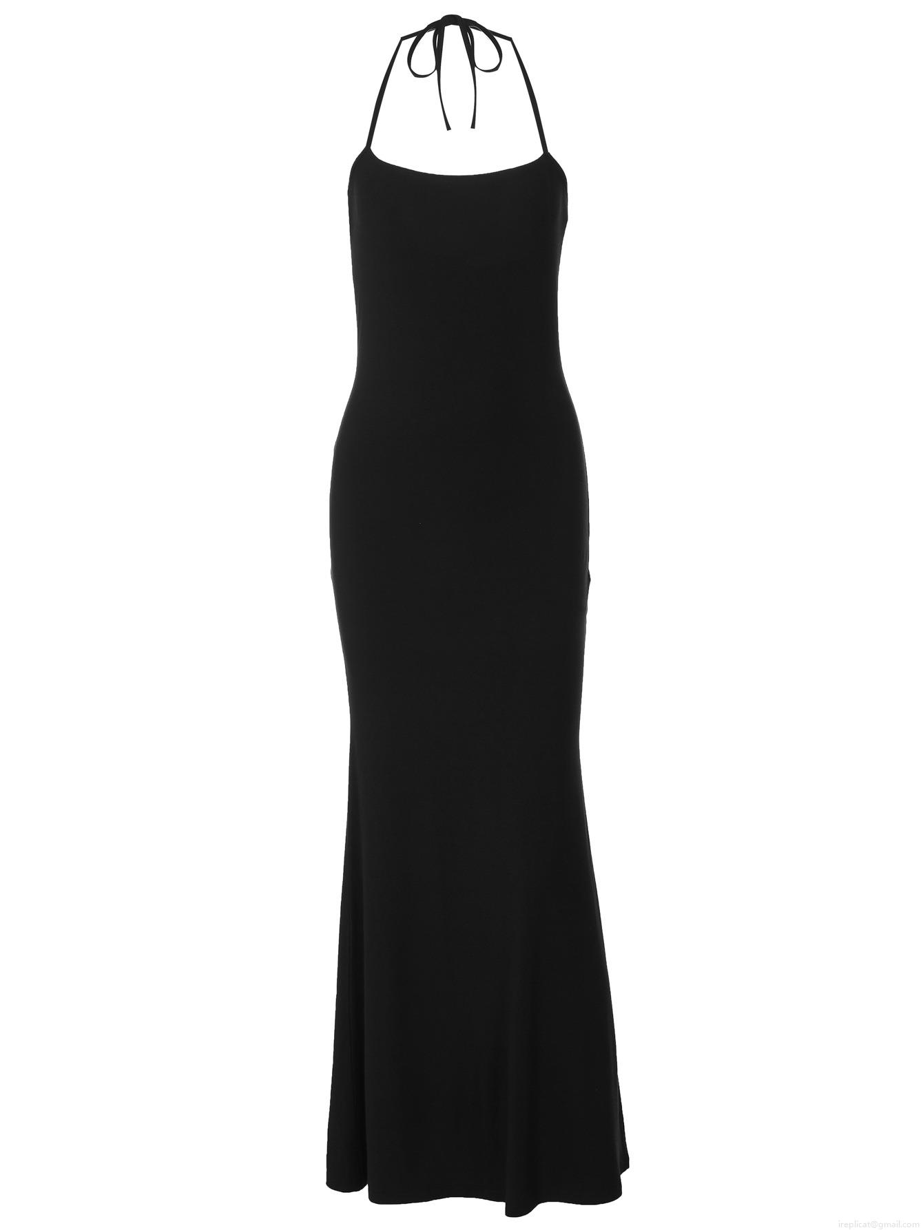 • Women Sexy Halter Neck Backless Slim Fit Maxi Dress Solid Color Sleeveless Rayon Spandex Summer Vacation Elegant Long Dress