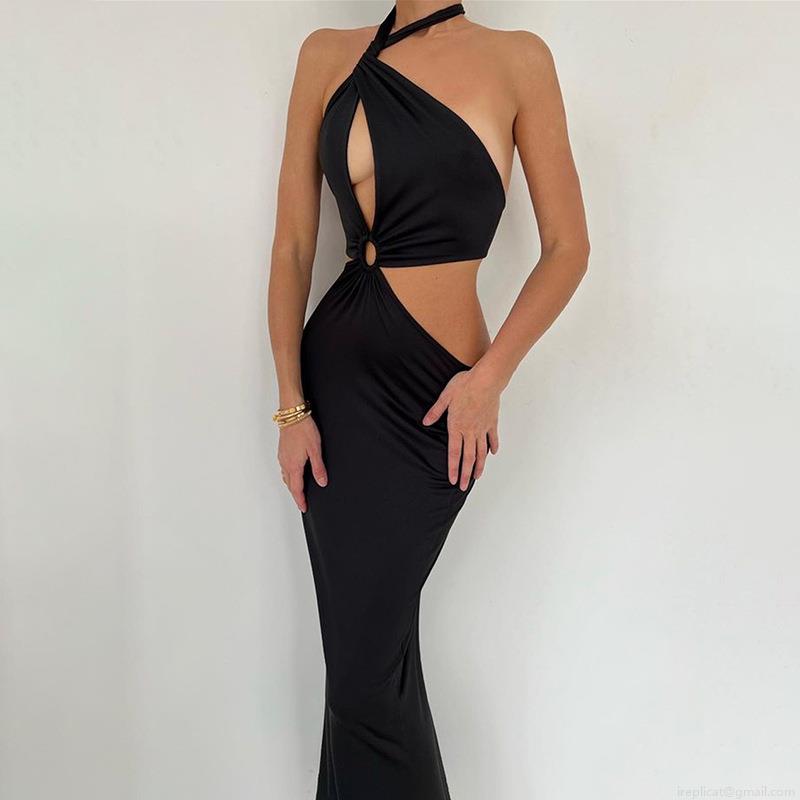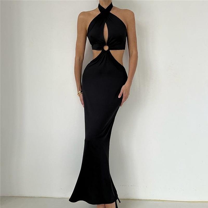 • Women Sexy Halter Neck Cut Out Maxi Dress Polyester Sleeveless Backless Criss Cross O-Ring High Waist Slim Fit Bodycon Long Dress For Summer Party Evening Night Out Clubwear