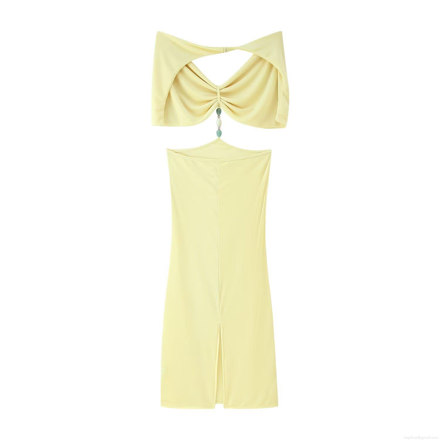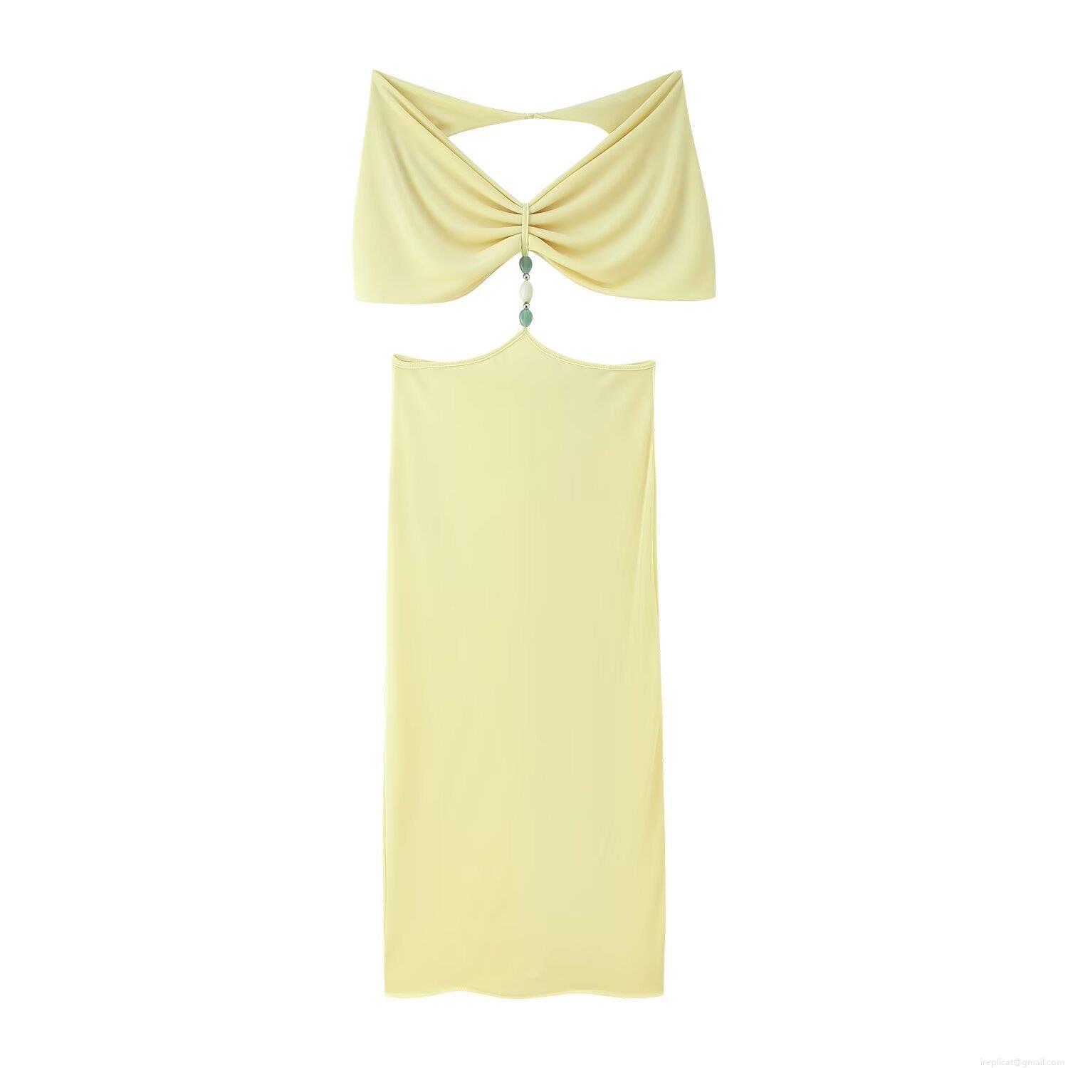 Solid Color, Hollow Out, Pleats, Bead, Forked