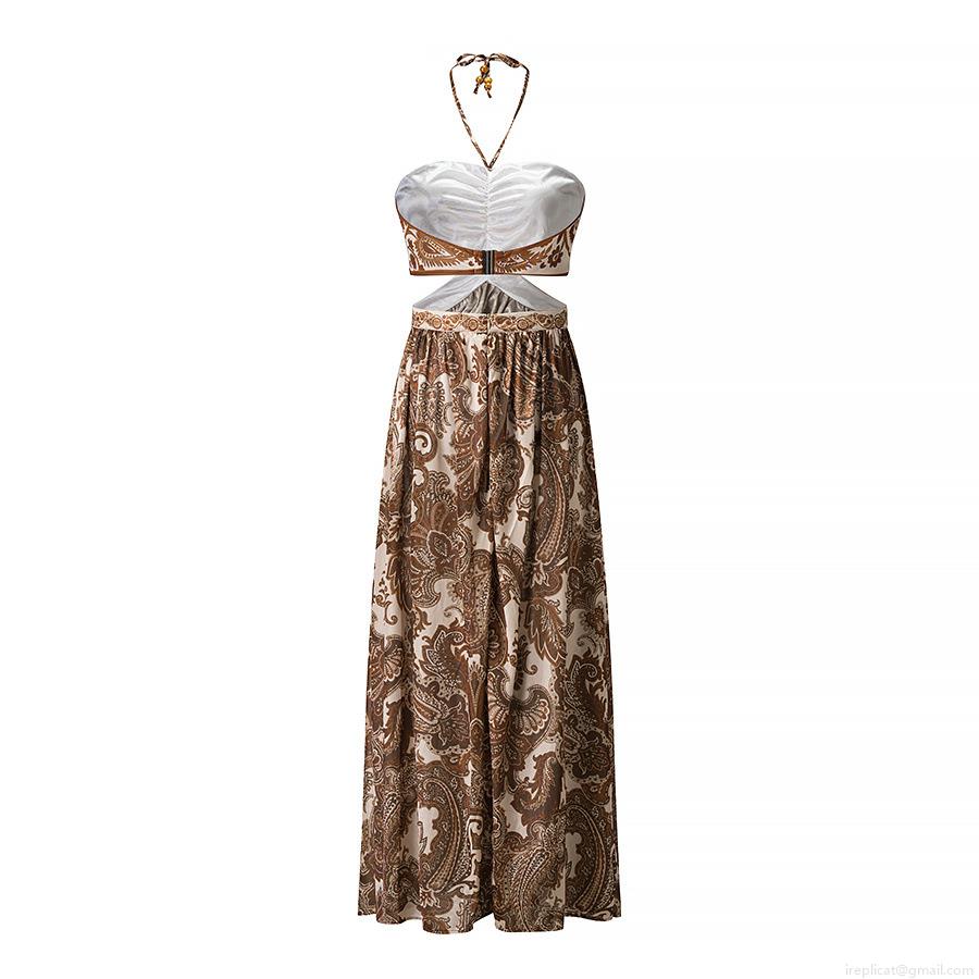 • Women Sexy Halter Neck Maxi Dress Paisley Print Bohemian Backless Cut Out Satin Dress Vintage Party Banquet Beach Resort Long Sundress