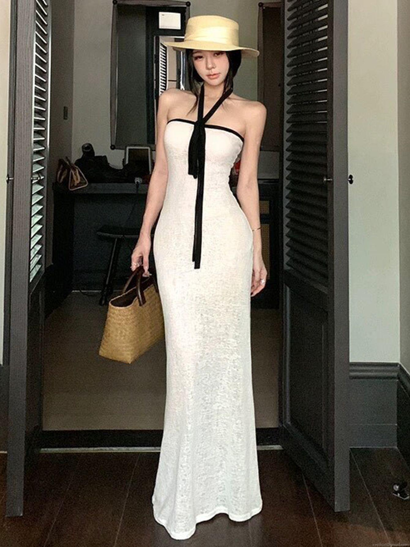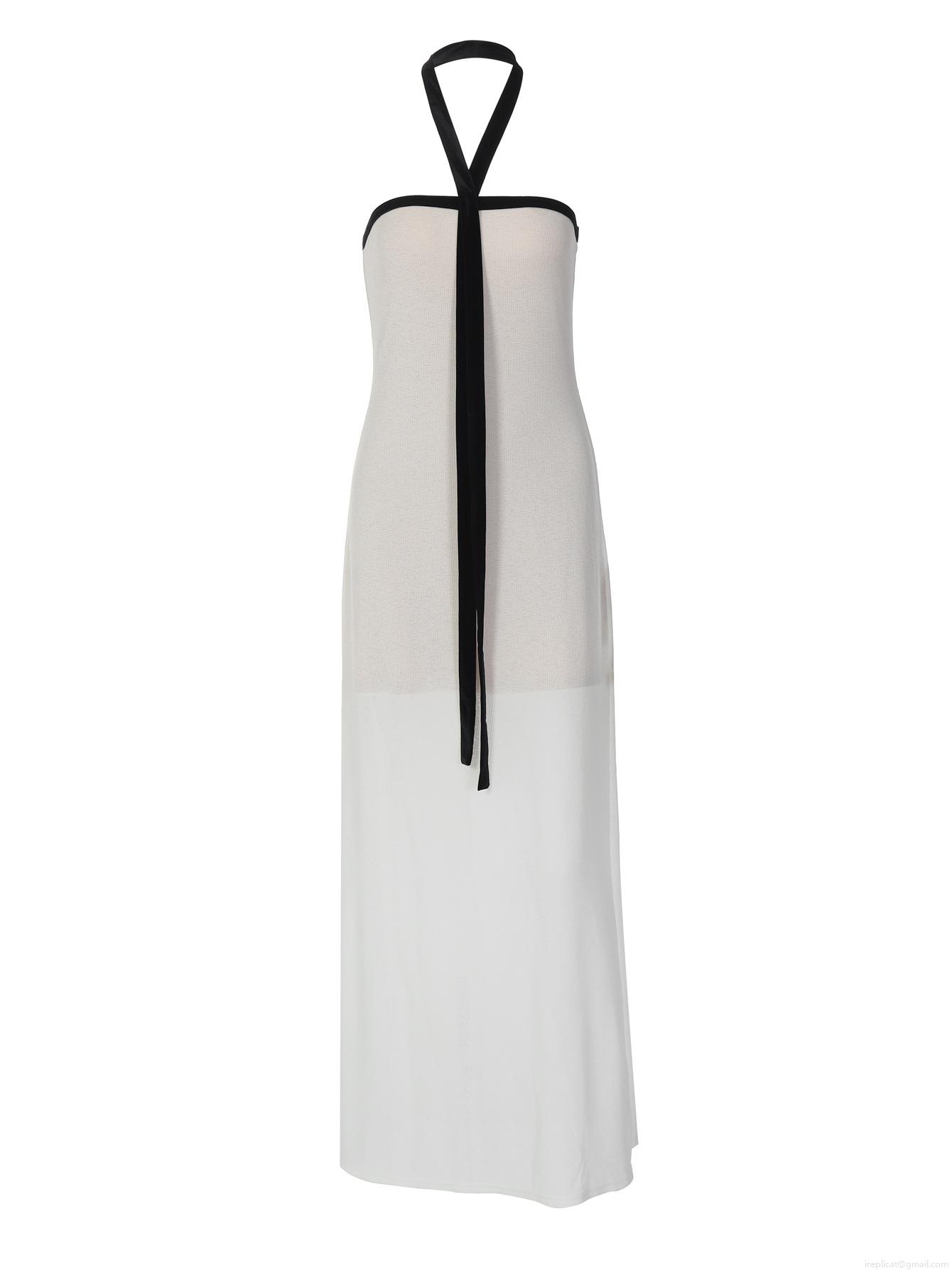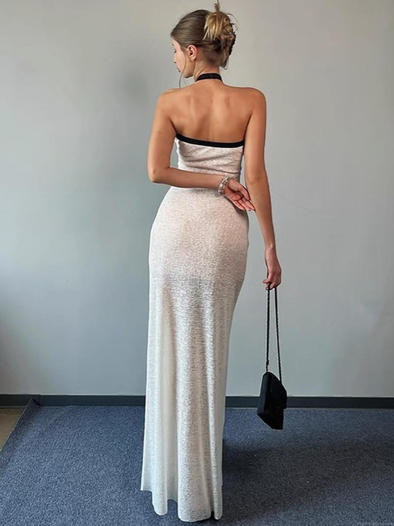 • Women Sexy Halter Neck Maxi Dress Polyester Spandex Ribbed Knit Black Tie Backless Slim Fit Sleeveless Long Dresses Summer Elegant White Sun Dress
