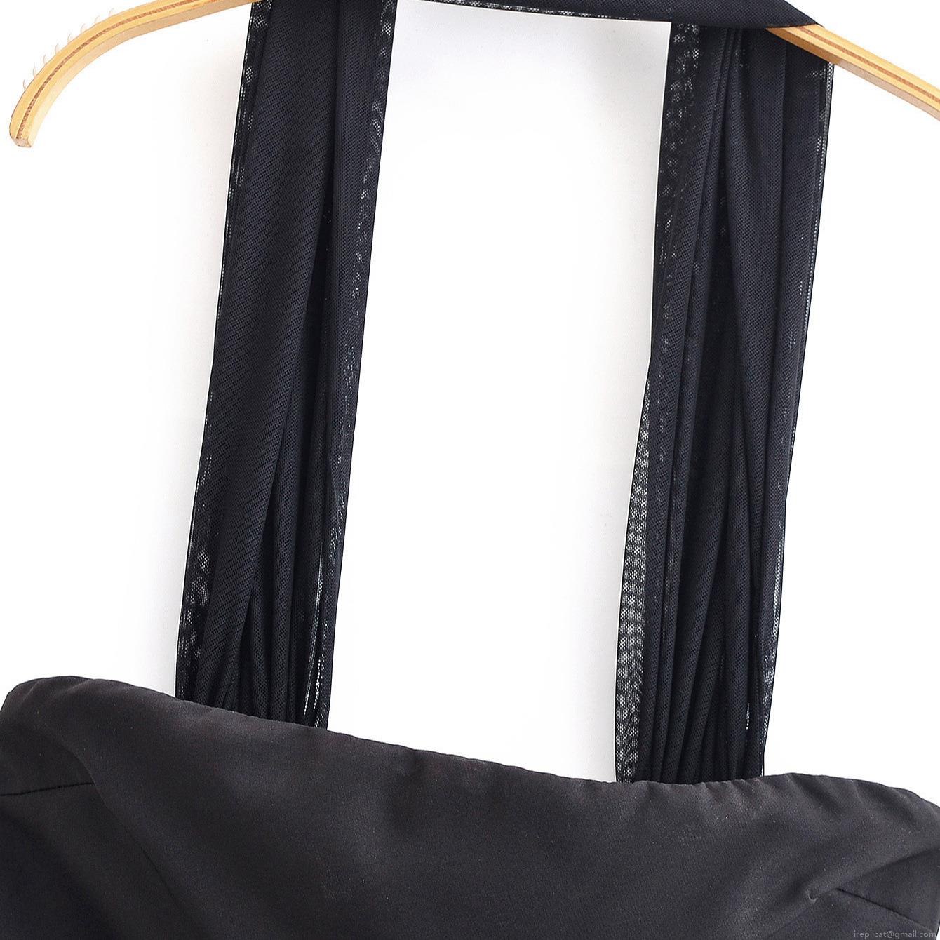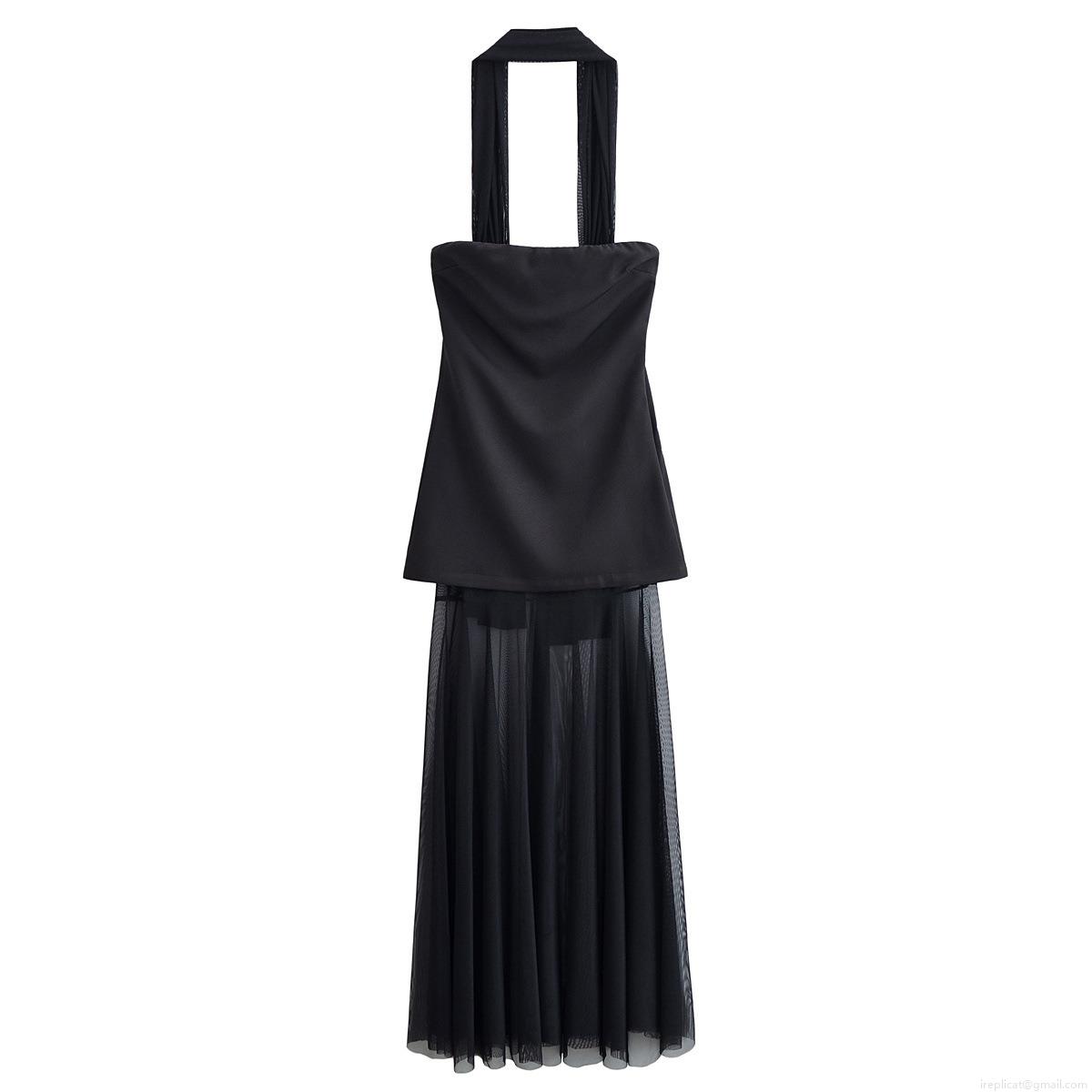 • Women Sexy Halter Neck Mesh Patchwork Maxi Dress Off-Shoulder Pleated Tulle Party Evening Long Dress Sleeveless Slim Fit Lady Clubwear Black
