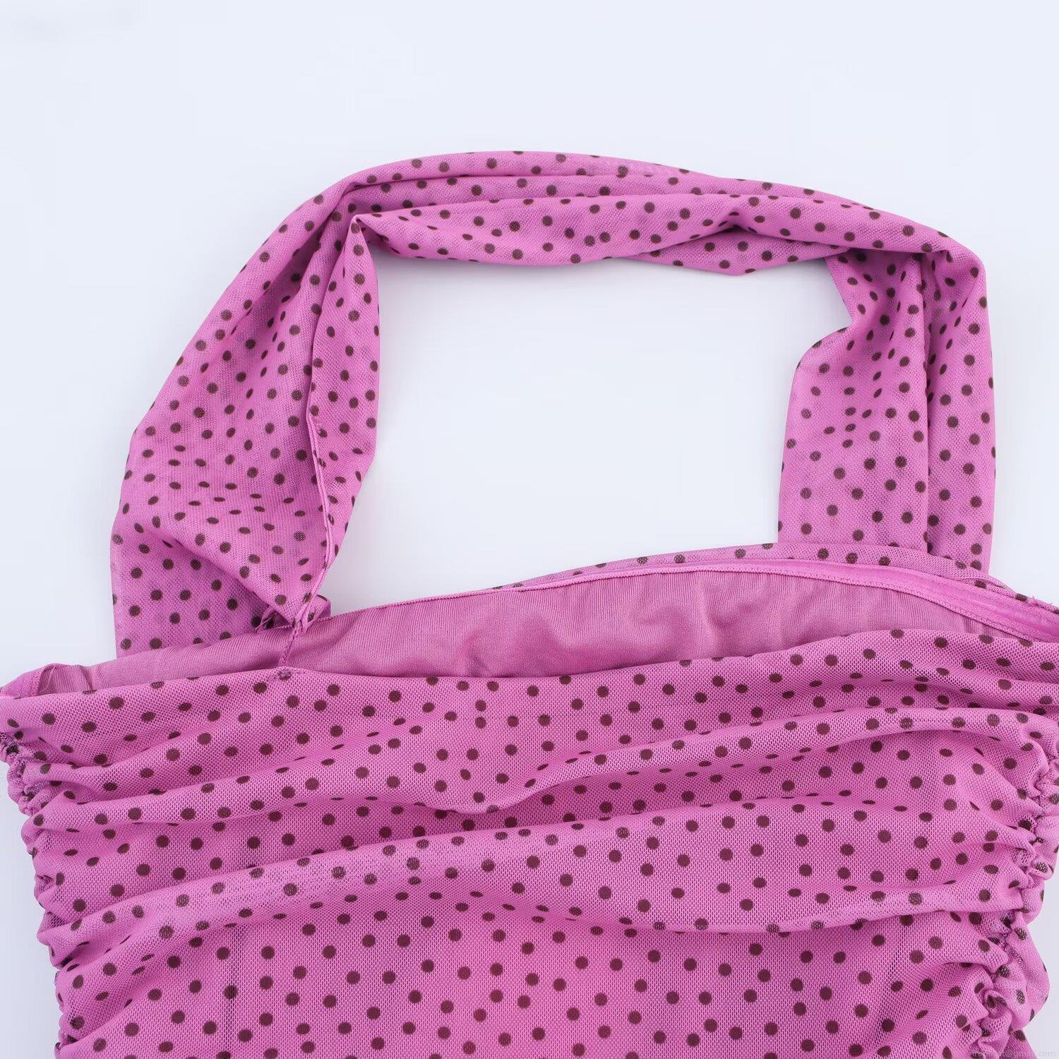 • Women Sexy Halter Polka Dot Pleated Mesh Maxi Dress Irregular Hem Sleeveless Backless Long Bodycon Dress For Clubwear Party Evening Summer Fashion