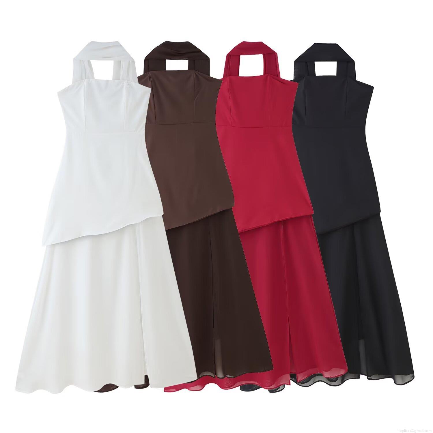Solid Color, Splice, Neckband, Backless, Layered Design, Irregular Hem