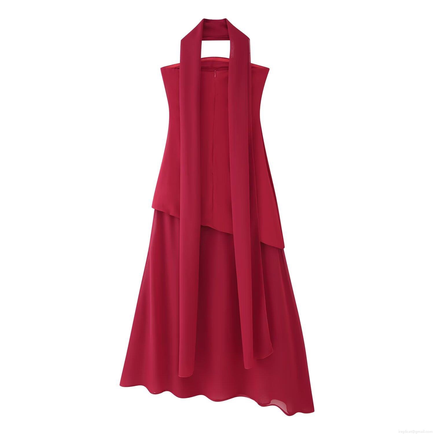 • Women Sexy Halterneck Backless Maxi Dress Elegant Patchwork Mesh Irregular Hem High Waist Sleeveless Long Dress For Party Clubwear Summer