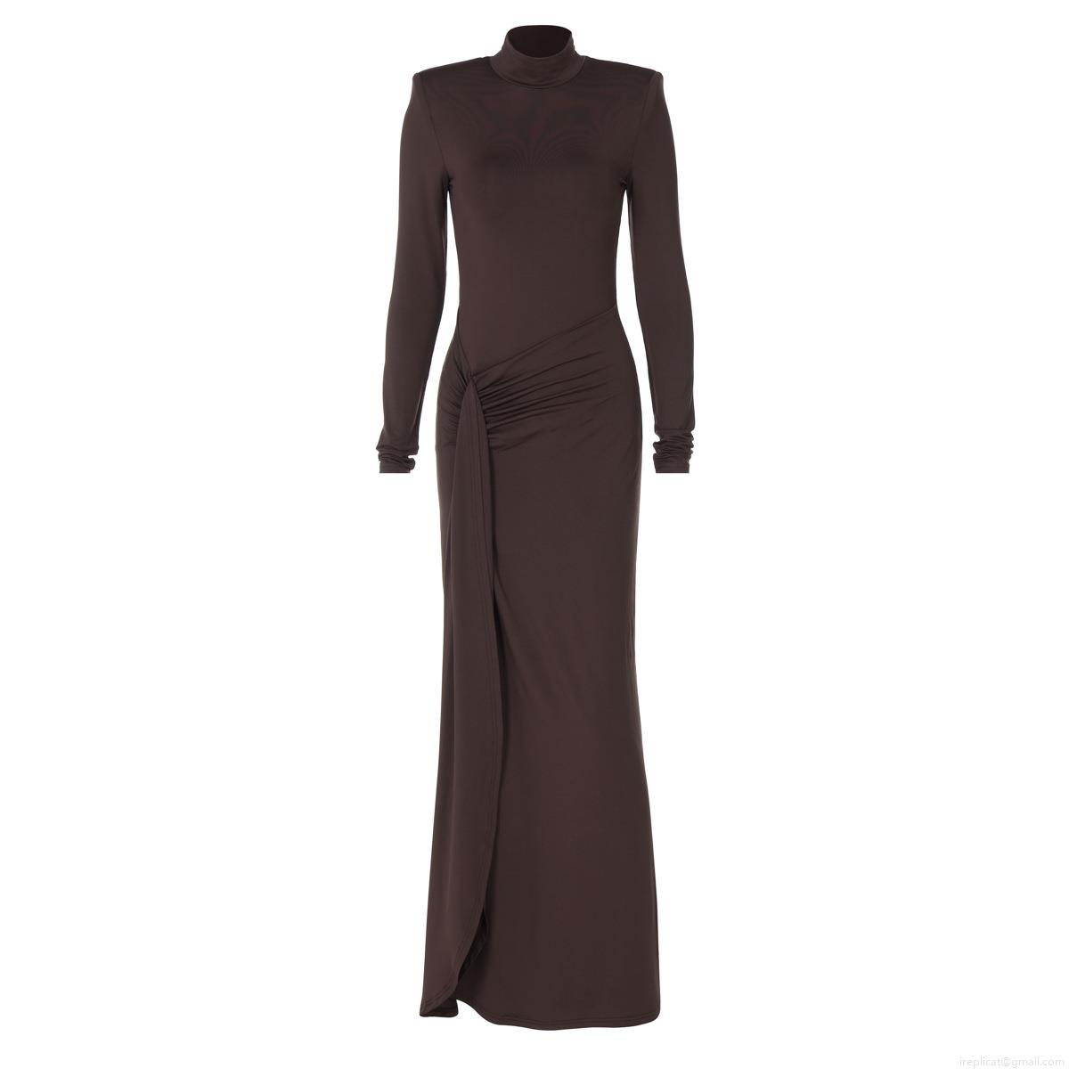 • Women Sexy High Neck Long Sleeve Maxi Dress Ruched Side Split Bodycon Polyester Spandex Blend Solid Color Party Evening Long Gown