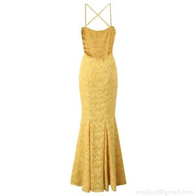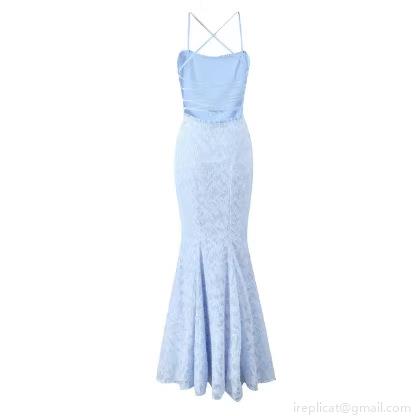 • Women Sexy Lace Mermaid Maxi Dress Spaghetti Strap Backless Lace-Up Elegant Evening Party Dress Floral Crochet Long Gown For Women